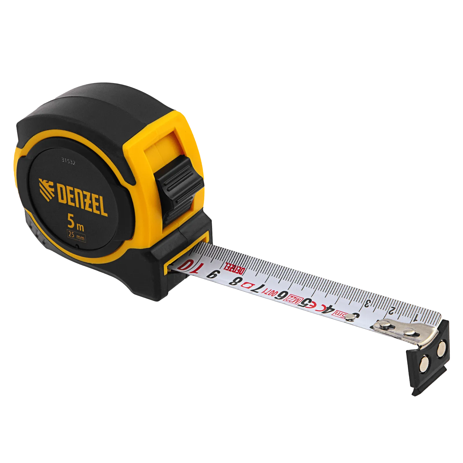 Рулетка Denzel 31532 в двухкомпонентном корпусе, с измерительной лентой шириной 25 мм и магнитным обрезиненным зацепом, позволяет определять размеры предметов и расстояния до 5 м. Широкая упругая лента упрощает проведение измерений в труднодоступных местах. Рулетка будет полезна при проведении строительных, ремонтных и различных бытовых работ.
