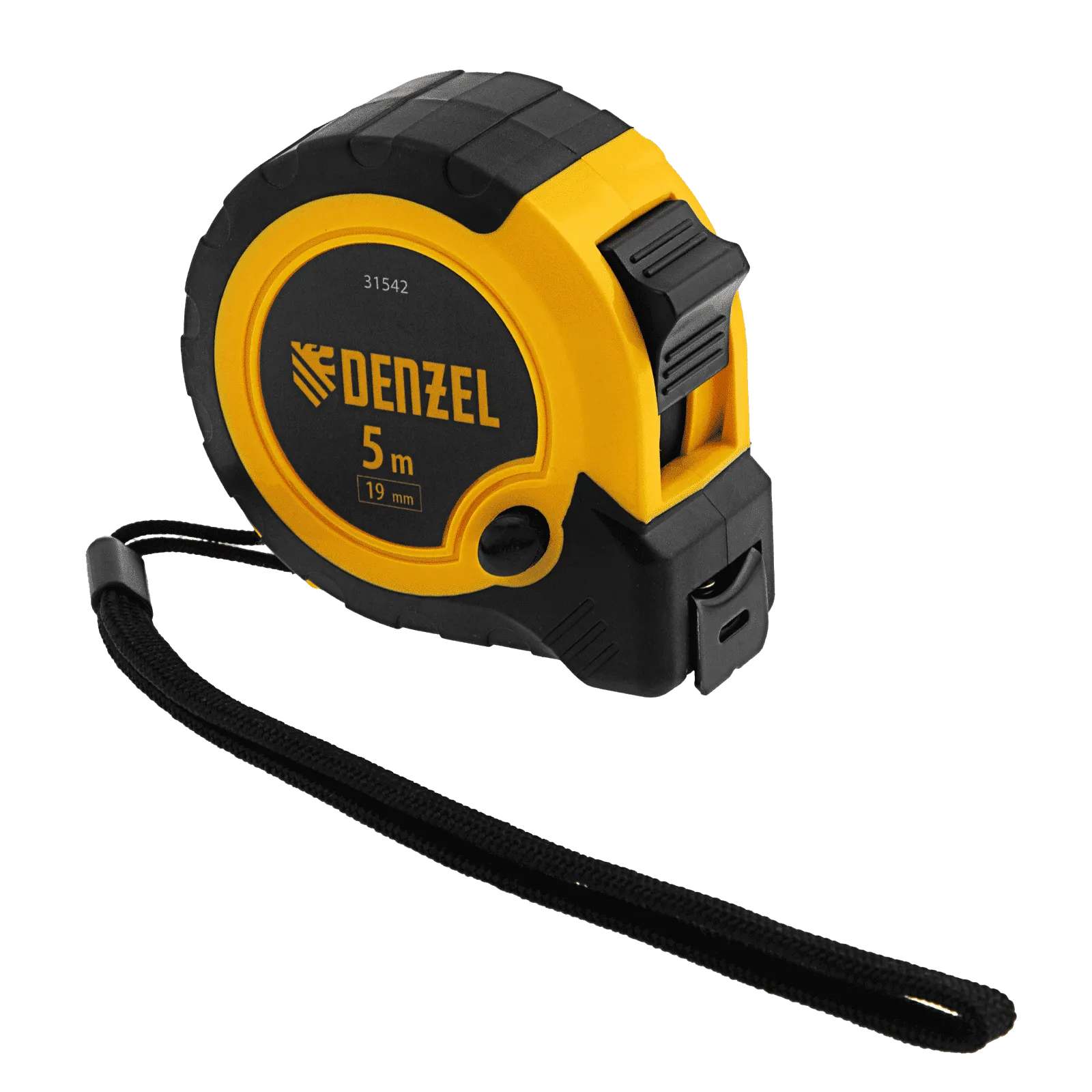 Рулетка Denzel 31542 в двухкомпонентном корпусе, с кнопкой-паузой, с полотном шириной 19 мм и длиной 5 м, используется для измерения расстояний и размеров предметов. Стальная лента с эмалевым покрытием и защитной пластиной в месте крепления зацепа рассчитана на долгий срок службы. Рулетка будет полезна во время строительства и ремонта, а также пригодится в быту.