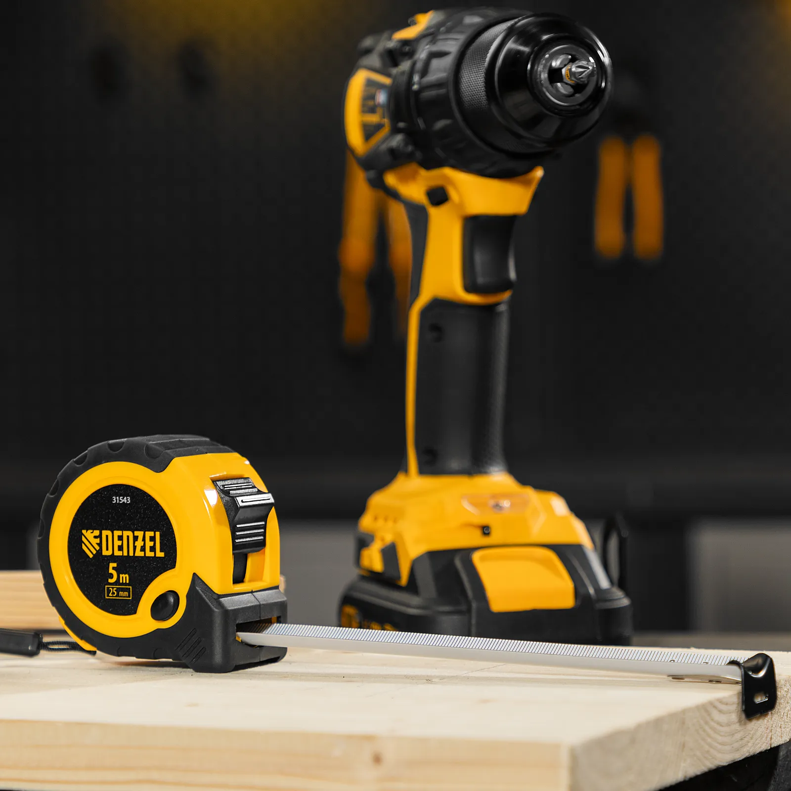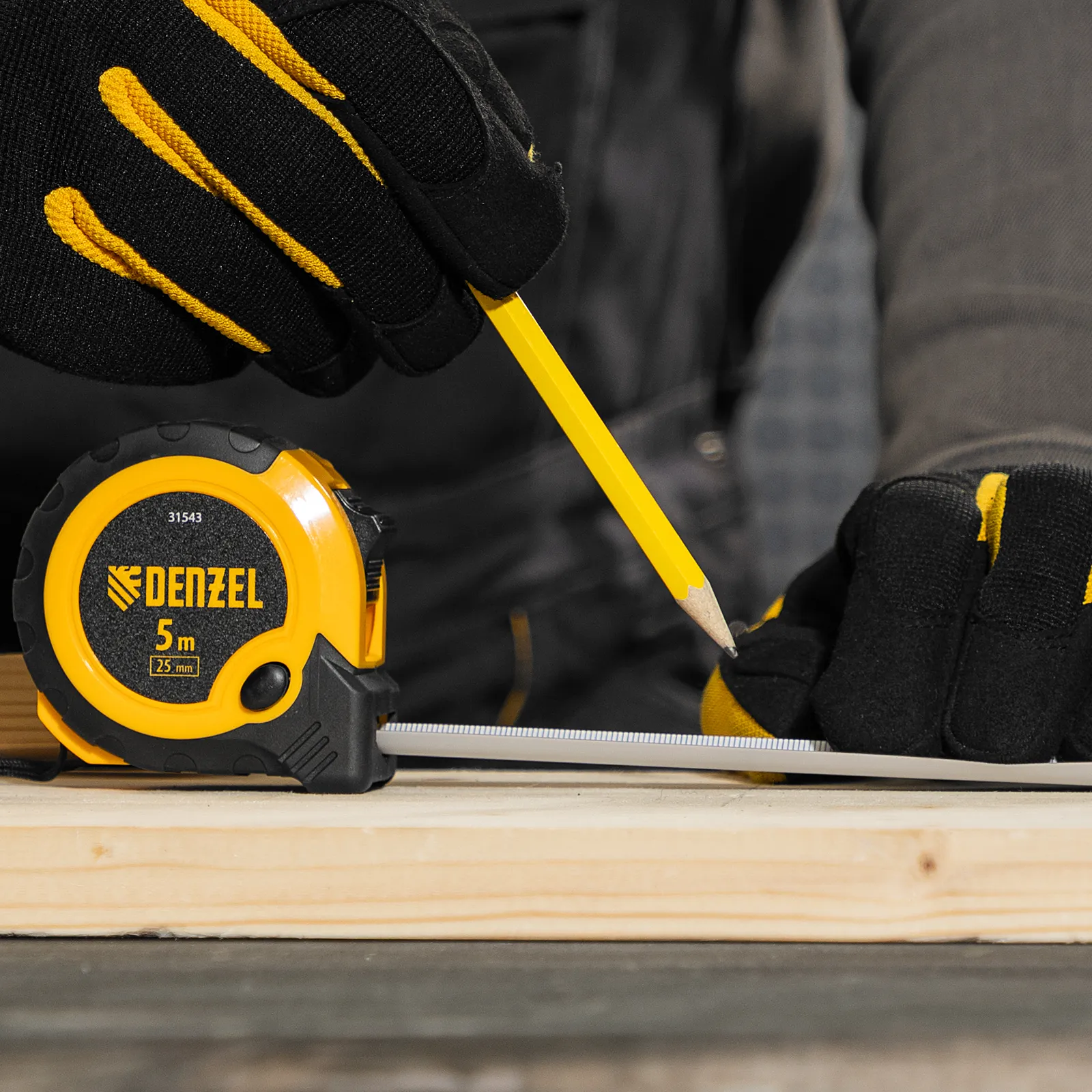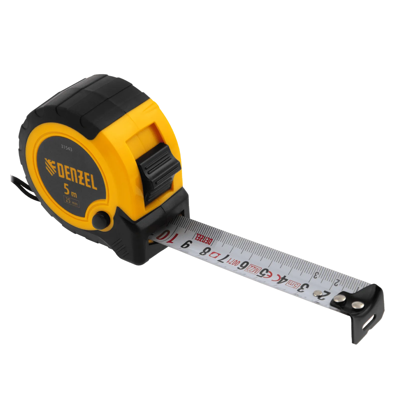 Рулетка Denzel 31543 в двухкомпонентном корпусе, с кнопкой-паузой, с полотном шириной 25 мм и длиной 5 м, используется для измерения расстояний и размеров предметов. Удобна для работы в труднодоступных местах. Стальная лента с эмалевым покрытием и защитной пластиной в месте крепления зацепа рассчитана на долгий срок службы. Рулетка будет полезна во время строительства и ремонта, а также пригодится в быту.