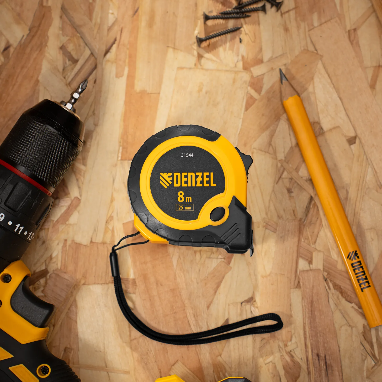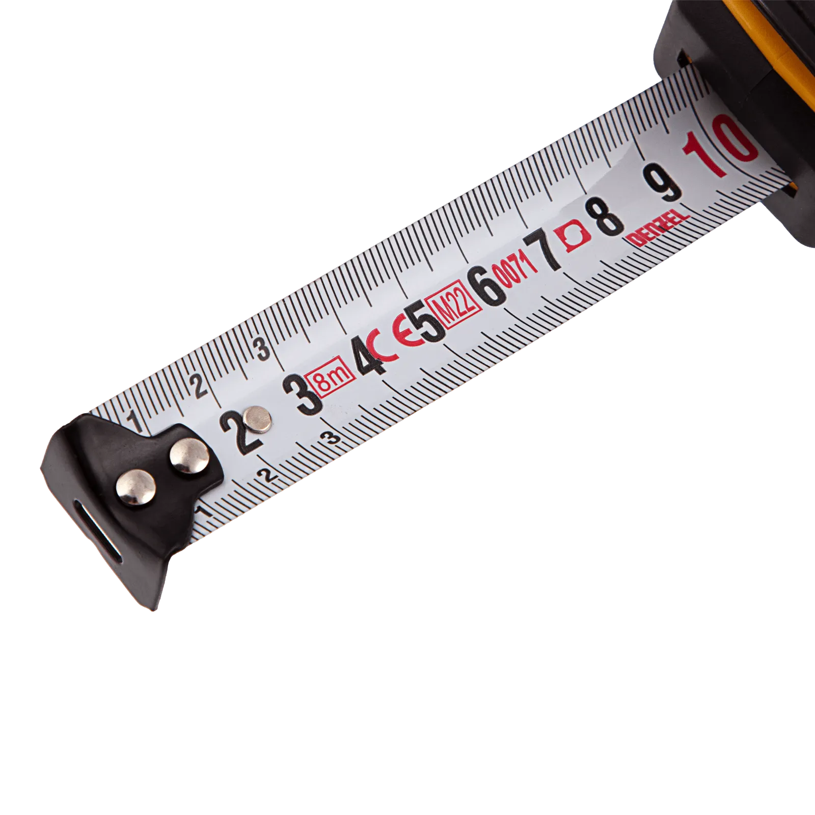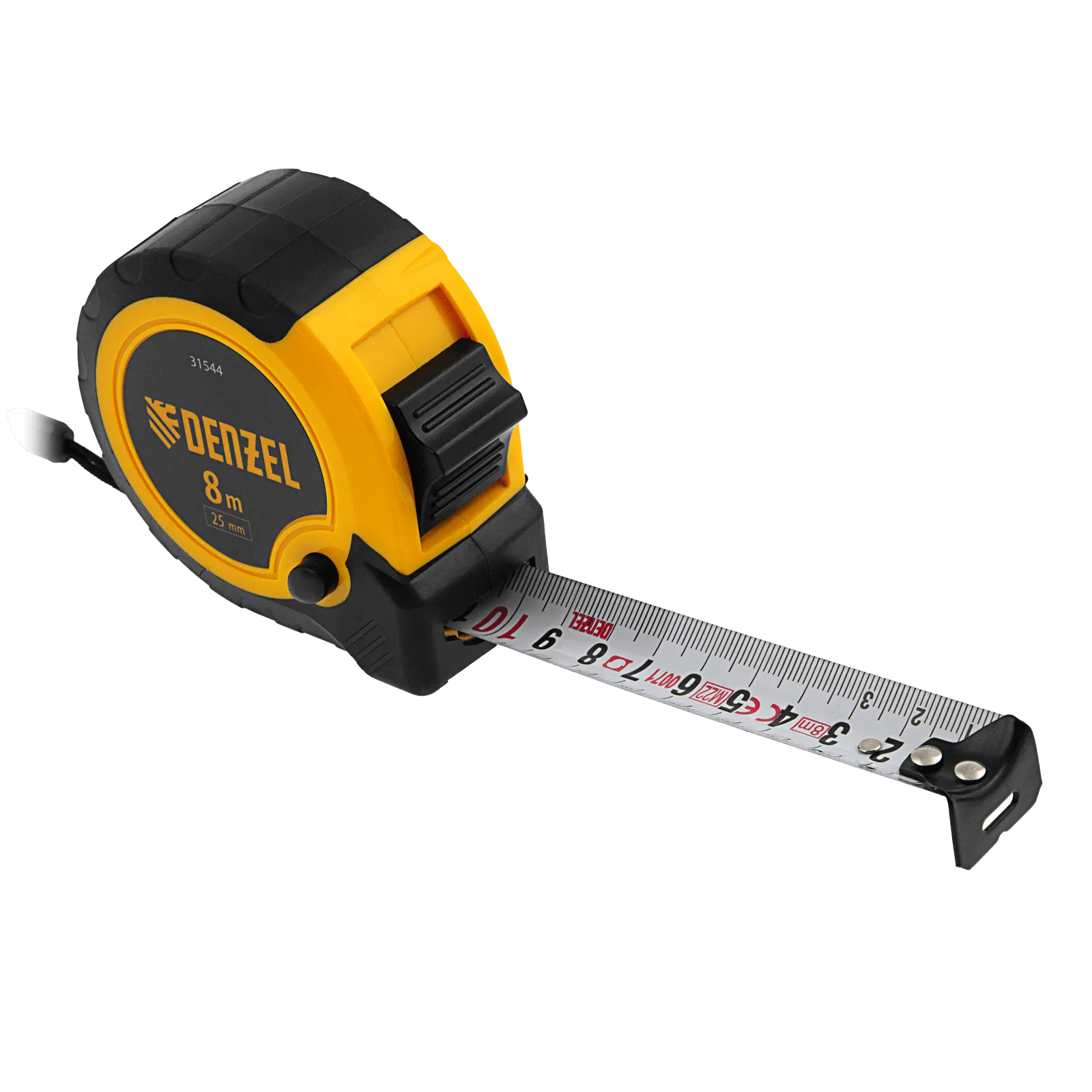 Рулетка Denzel 31544 в двухкомпонентном корпусе, с кнопкой-паузой, с полотном шириной 25 мм и длиной 8 м, используется для измерения расстояний и размеров предметов. Удобна для работы в труднодоступных местах. Стальная лента с эмалевым покрытием и защитной пластиной в месте крепления зацепа рассчитана на долгий срок службы. Рулетка будет полезна во время строительства и ремонта, а также пригодится в быту.