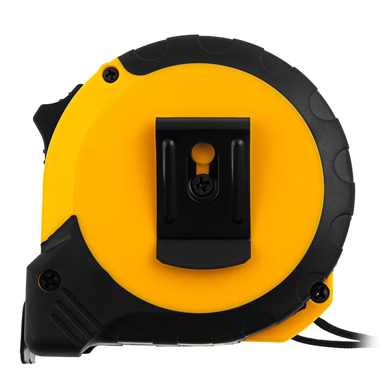 - Эргономичность — поясной зажим позволяет закрепить рулетку на ремне, чтобы освободить руки во время работы.