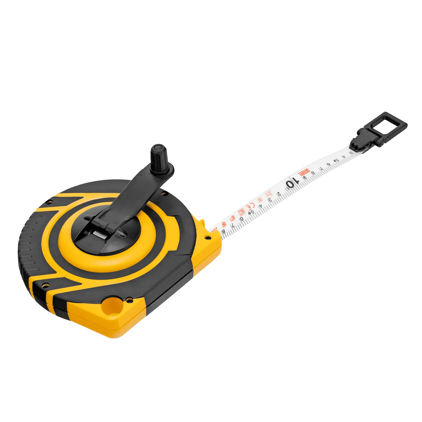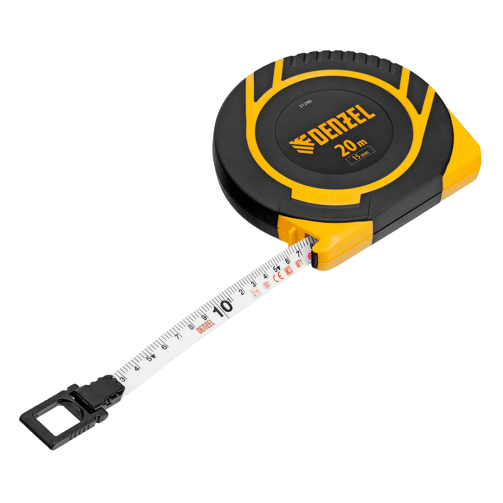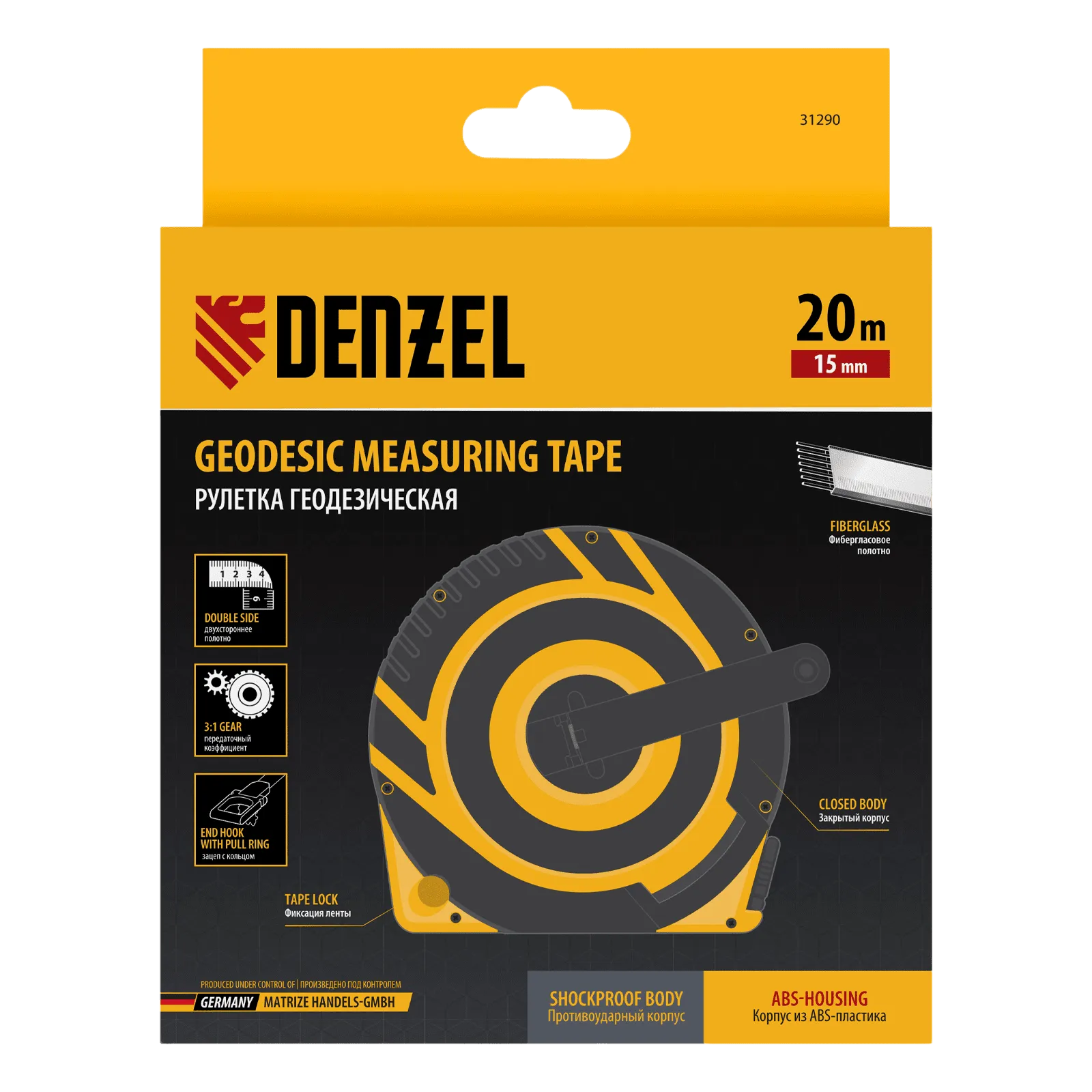 Геодезическая рулетка Denzel 31290 в закрытом корпусе, с фибергласовой лентой размером 20 м и х 15 мм, используется для проведения замеров на открытых участках и строительных объектах. Двухкомпонентный корпус из ABS-пластика с вставками из термопластичной резины устойчив к повреждениям. Рулетка будет полезна во время картографических исследований и при создании ландшафтного дизайна.