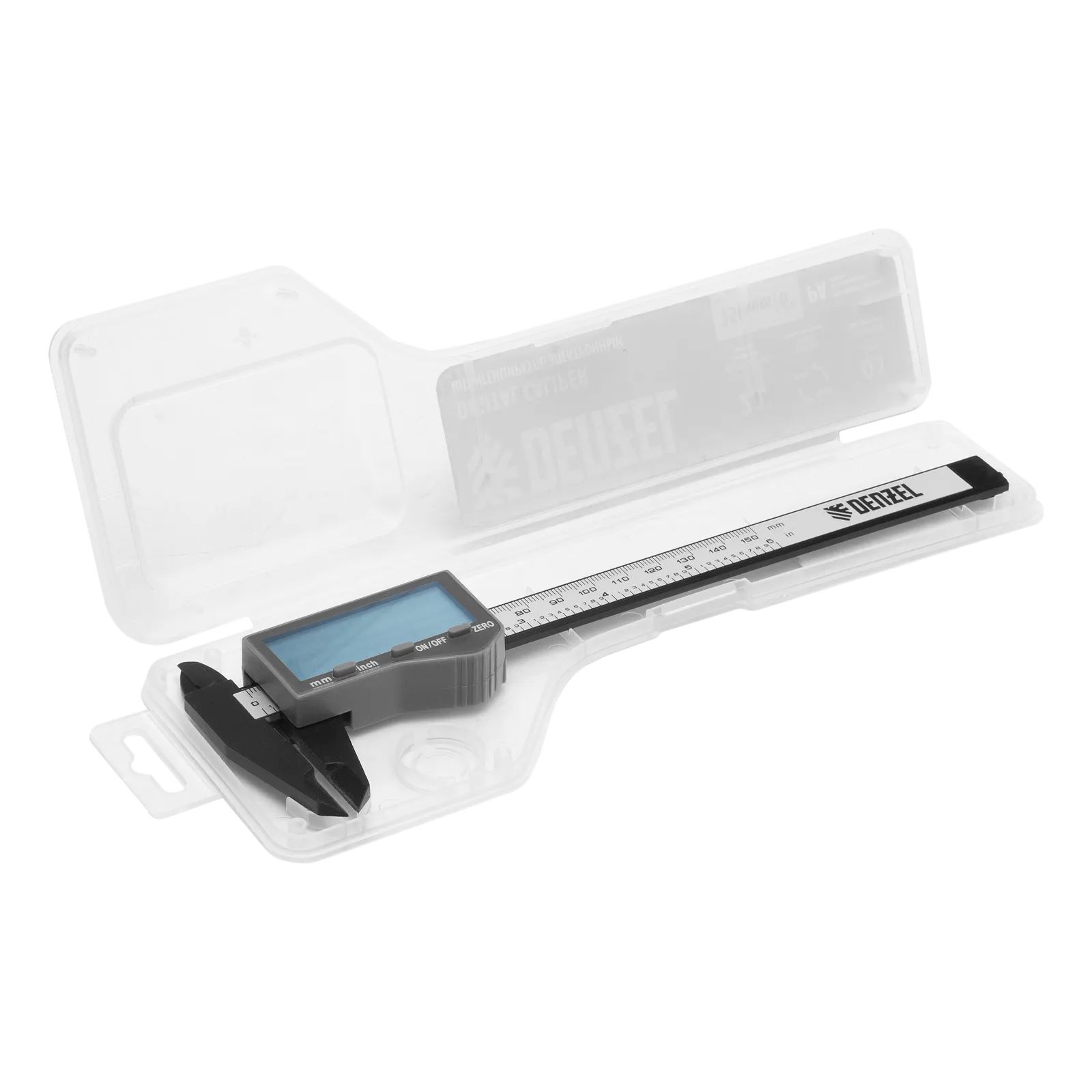 - Удобное хранение и транспортировка — штангенциркуль поставляется в прочном пластиковом кейсе.
