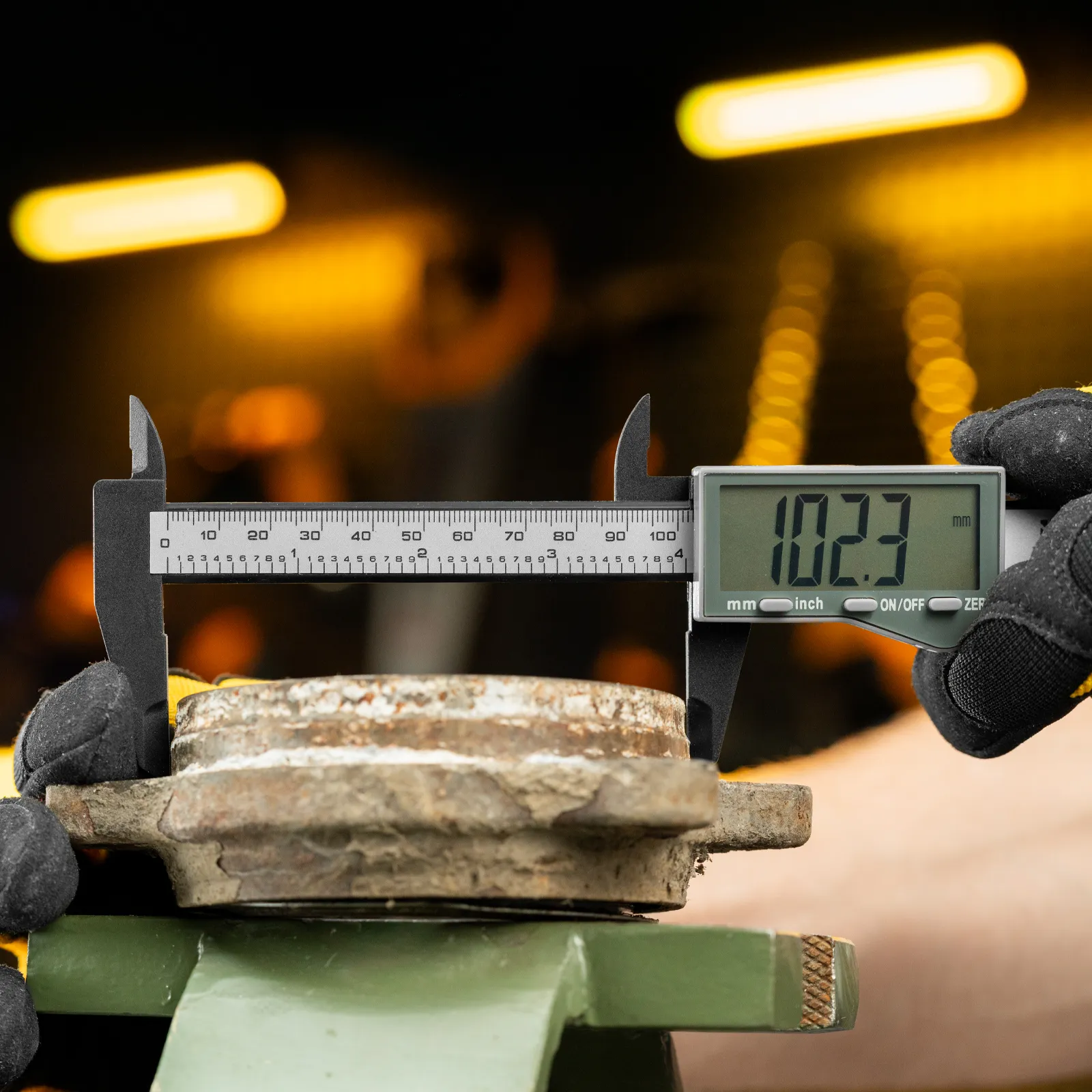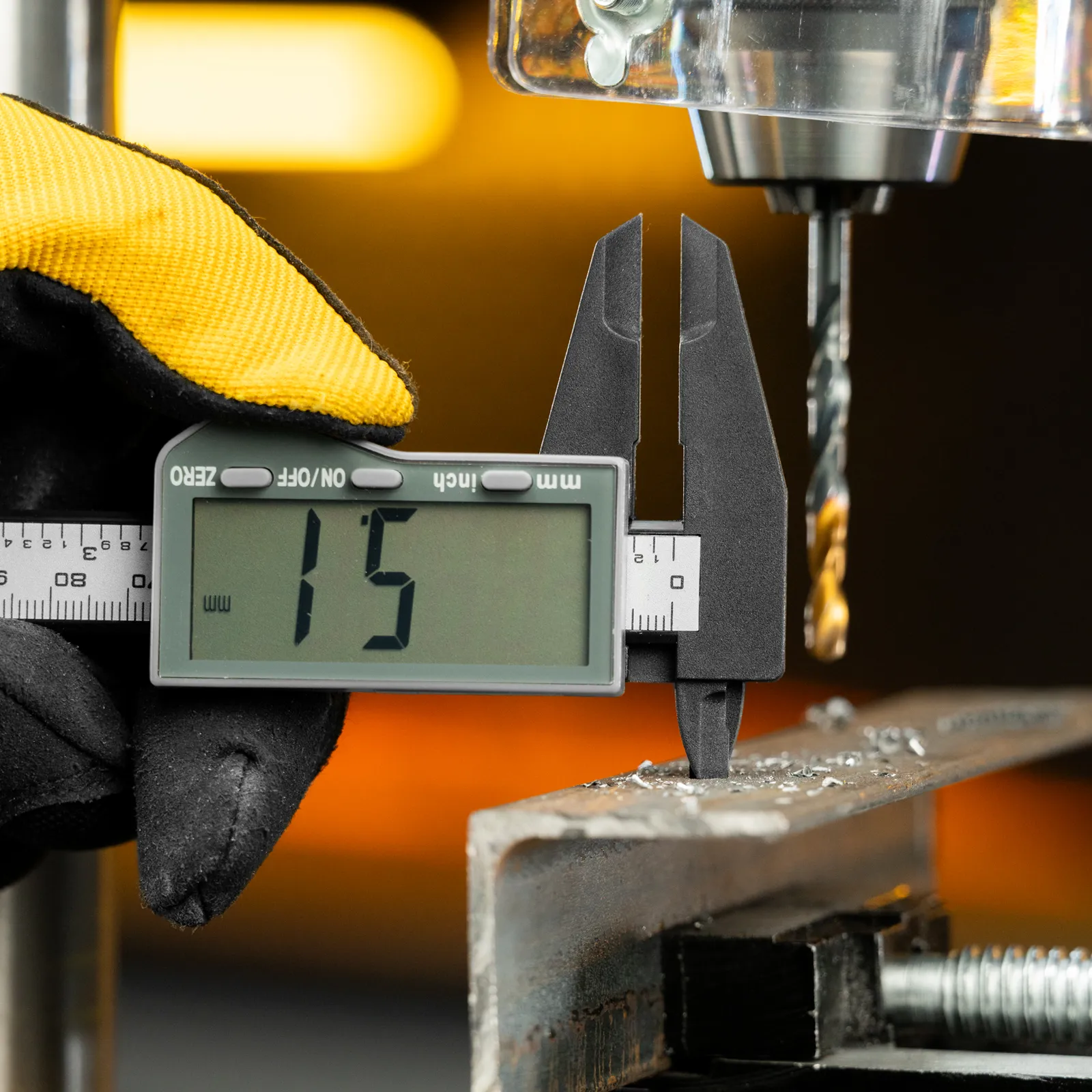 Штангенциркуль электронный пластиковый Denzel 31600 с большим дисплеем и глубиномером предназначен для определения внутренних и наружных размеров деталей в диапазоне 0-150 мм, а также глубин отверстий и канавок. Цена деления составляет 0,1 мм, погрешность — ±0,2 мм, что позволяет получать точные результаты. Доступно 2 режима измерения (в миллиметрах и дюймах) — такое решение повышает удобство работы с инструментом. Штангенциркуль будет полезен в мастерской, дома и в гараже.