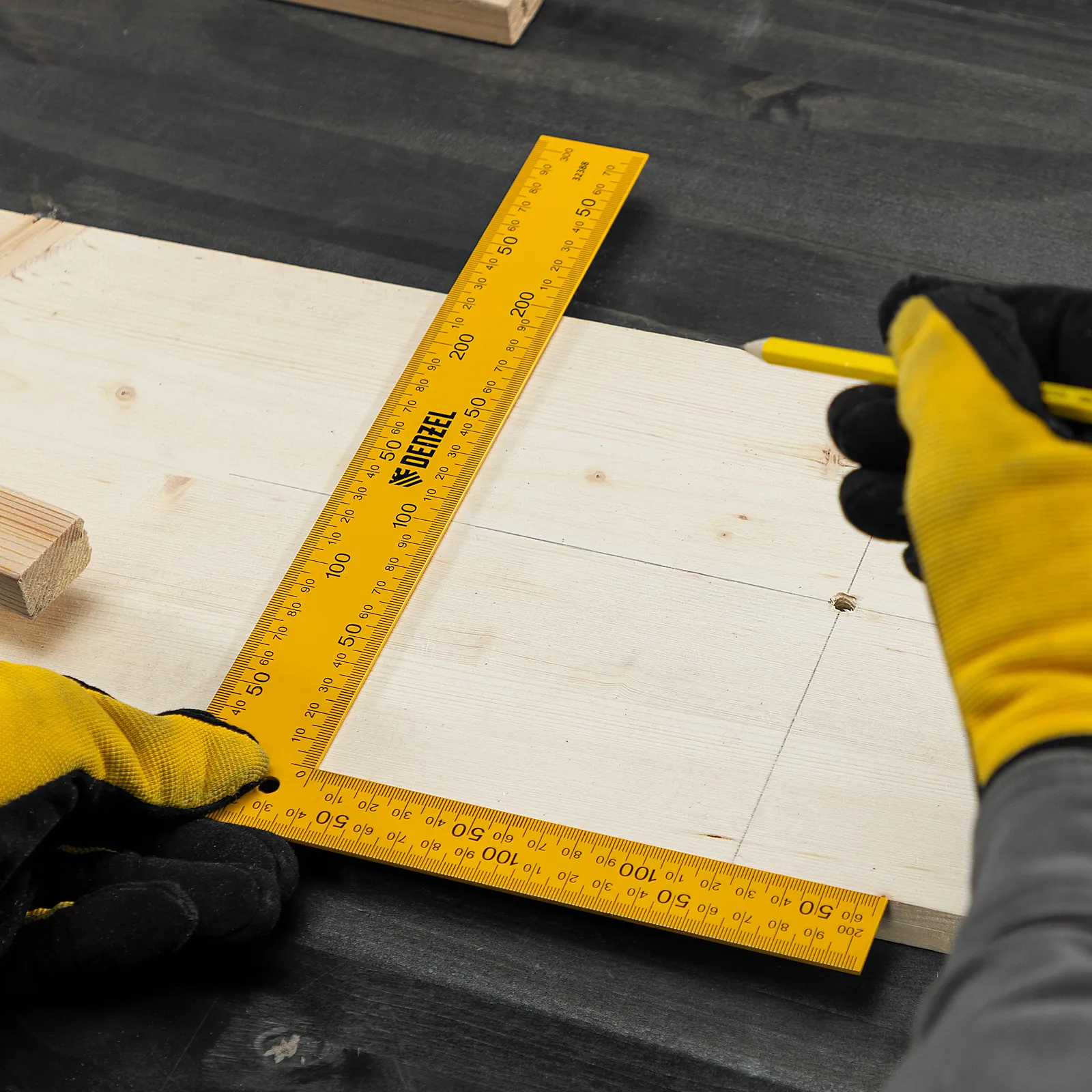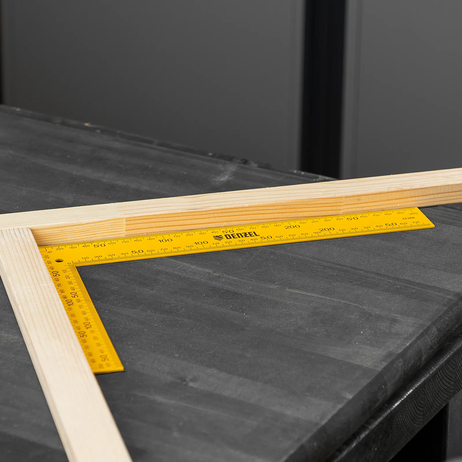 Стальной угольник Denzel 32388 размером 200 х 300 мм используется для разметки поверхностей и проверки прямых углов. Четкая двусторонняя измерительная шкала упрощает работу. Инструмент пригодится для выполнения столярных работ.