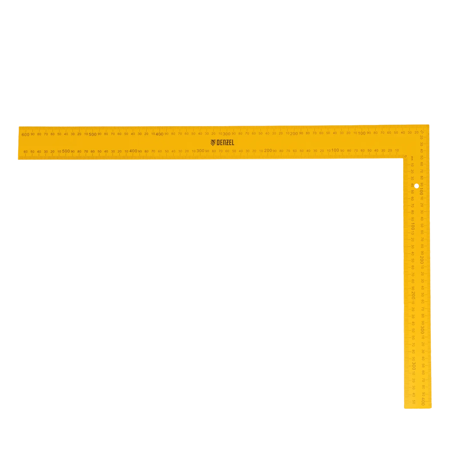 Стальной угольник Denzel 32389 размером 400 х 600 мм используется для разметки поверхностей и проверки прямых углов. Четкая двусторонняя измерительная шкала упрощает работу. Инструмент пригодится для выполнения столярных работ.