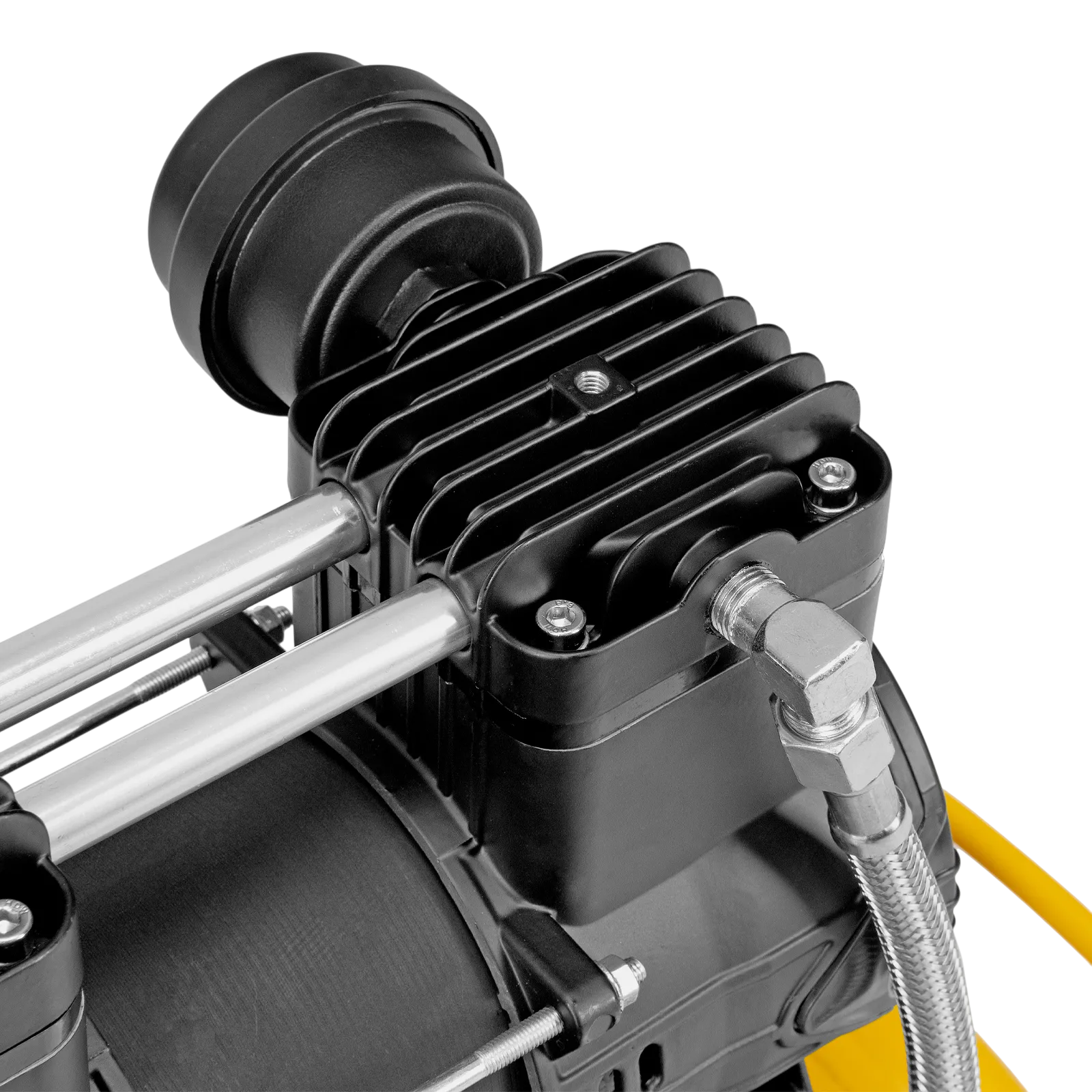 - Автономность — специальное реле останавливает компрессор по достижении максимального рабочего давления и запускает двигатель при падении давления до минимального уровня.