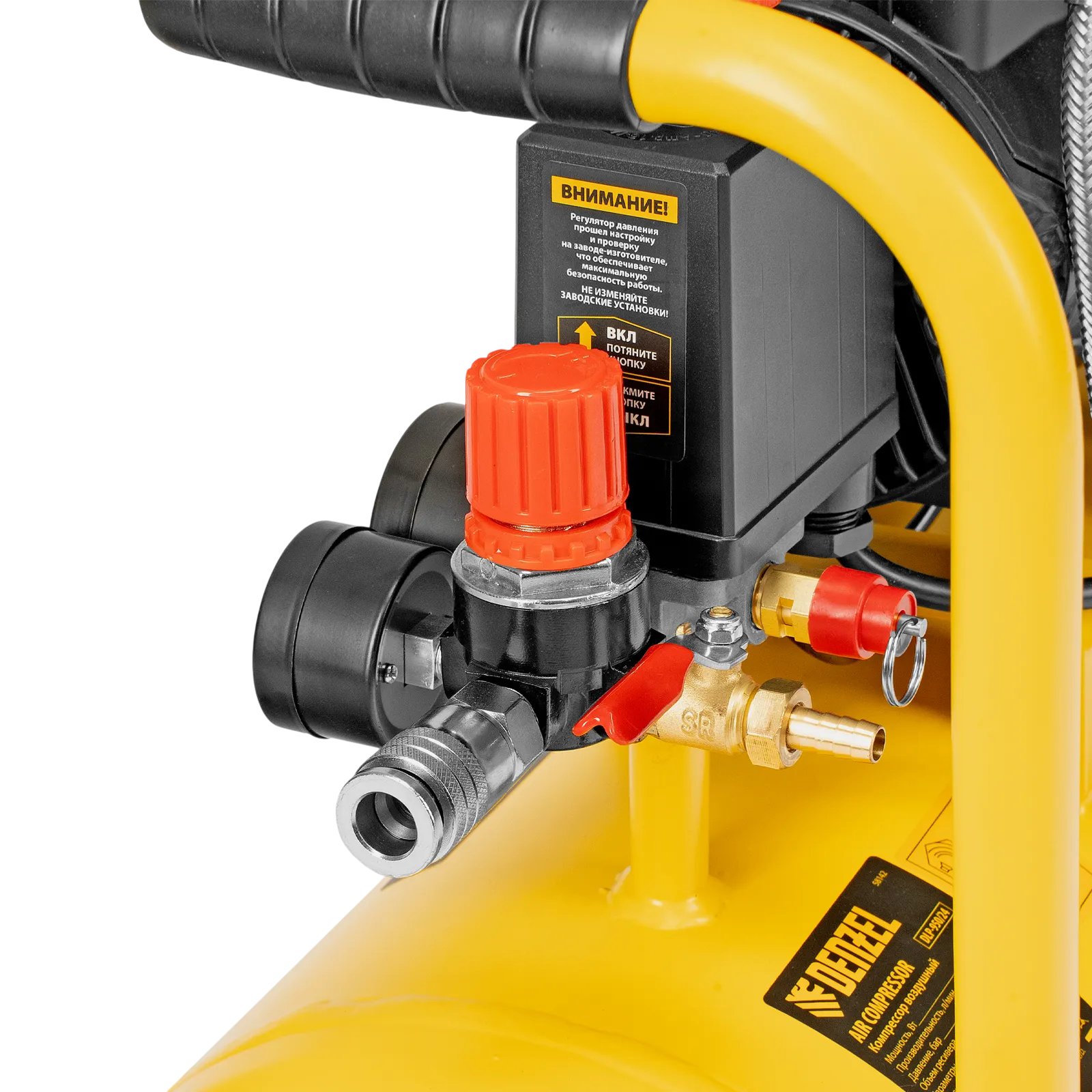 - Безопасность — в случае превышения максимального давления в ресивере срабатывает предохранительный клапан, что позволяет избежать аварийных ситуаций.