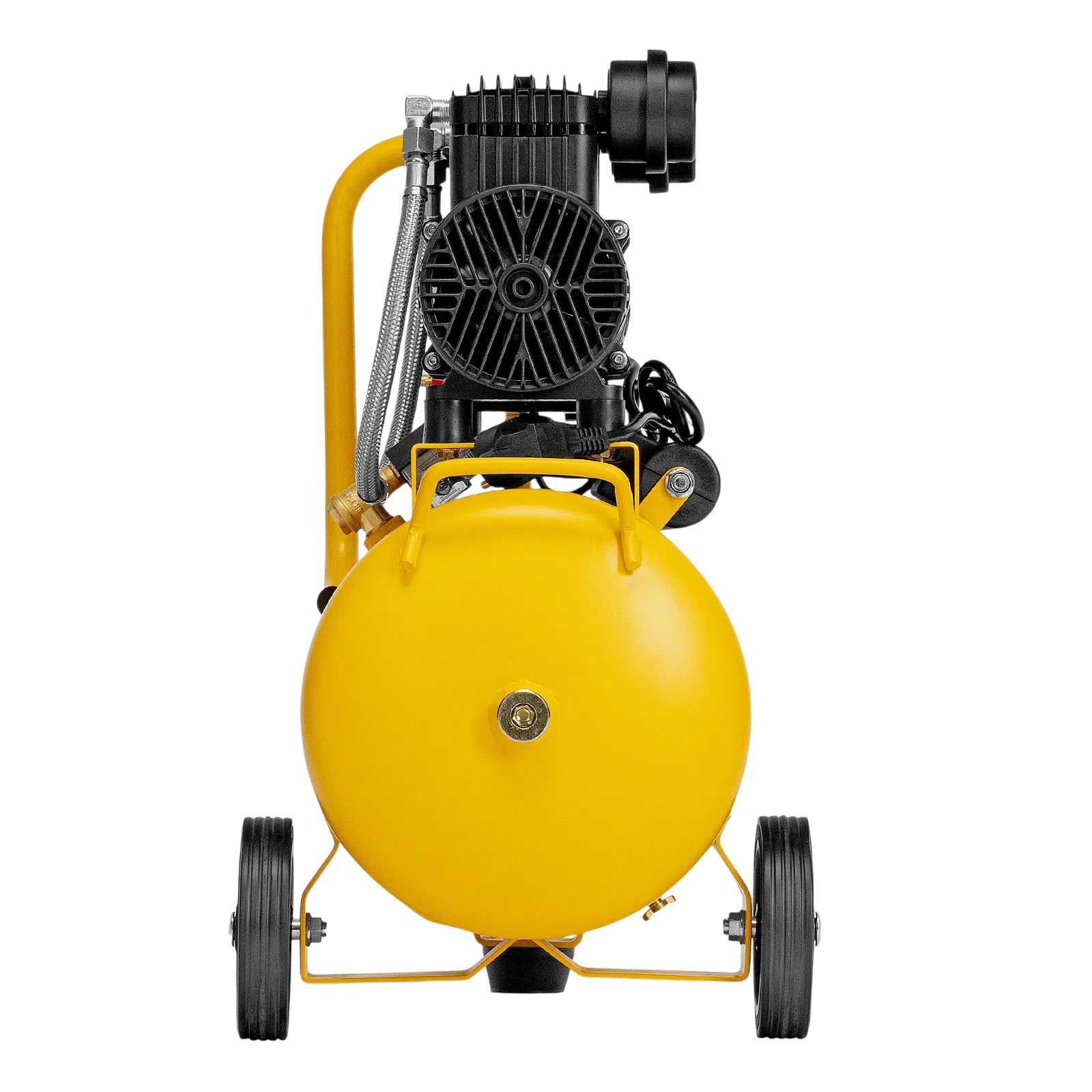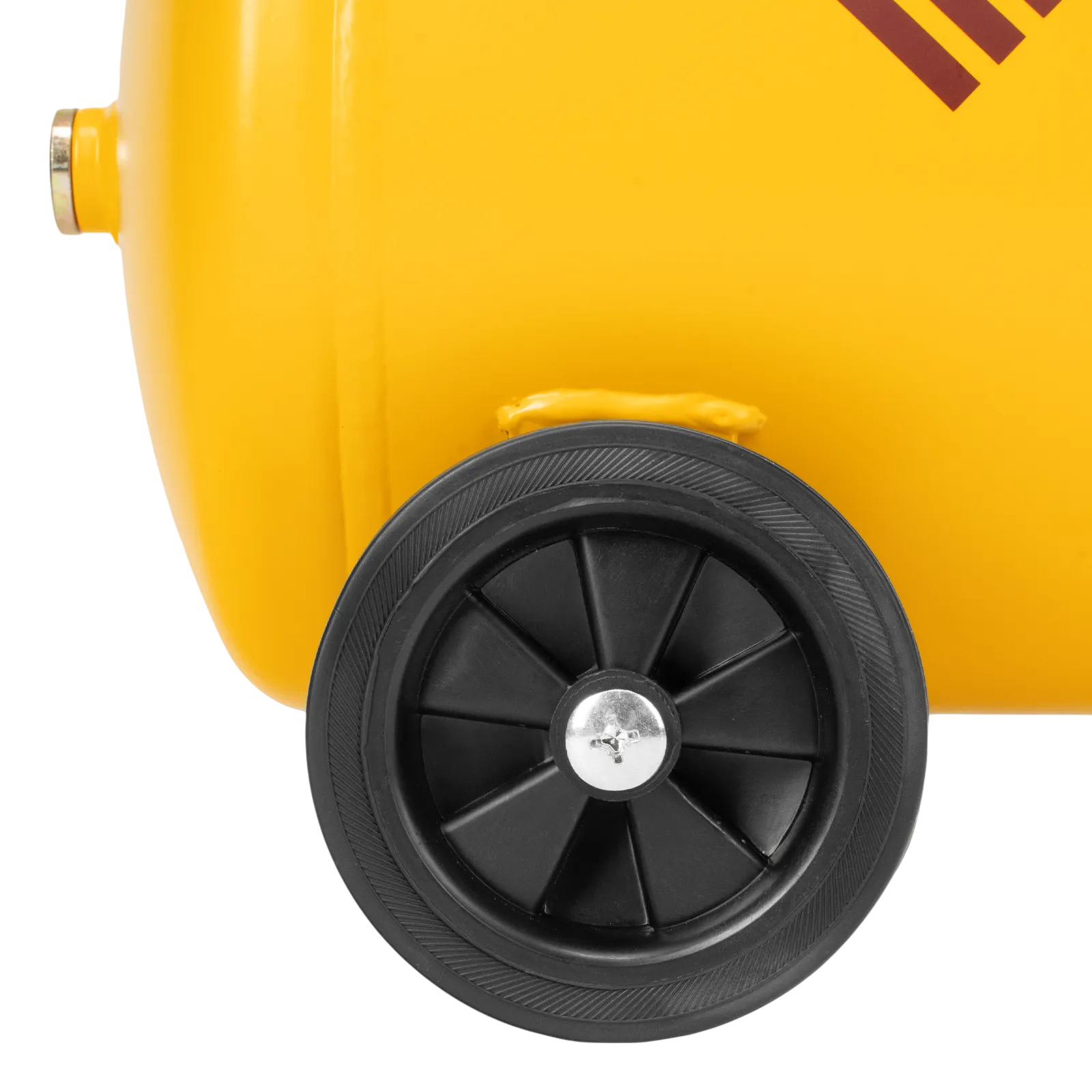 - Мобильность — 2 колеса и транспортировочная рукоятка упрощают перемещение компрессора по рабочей зоне.