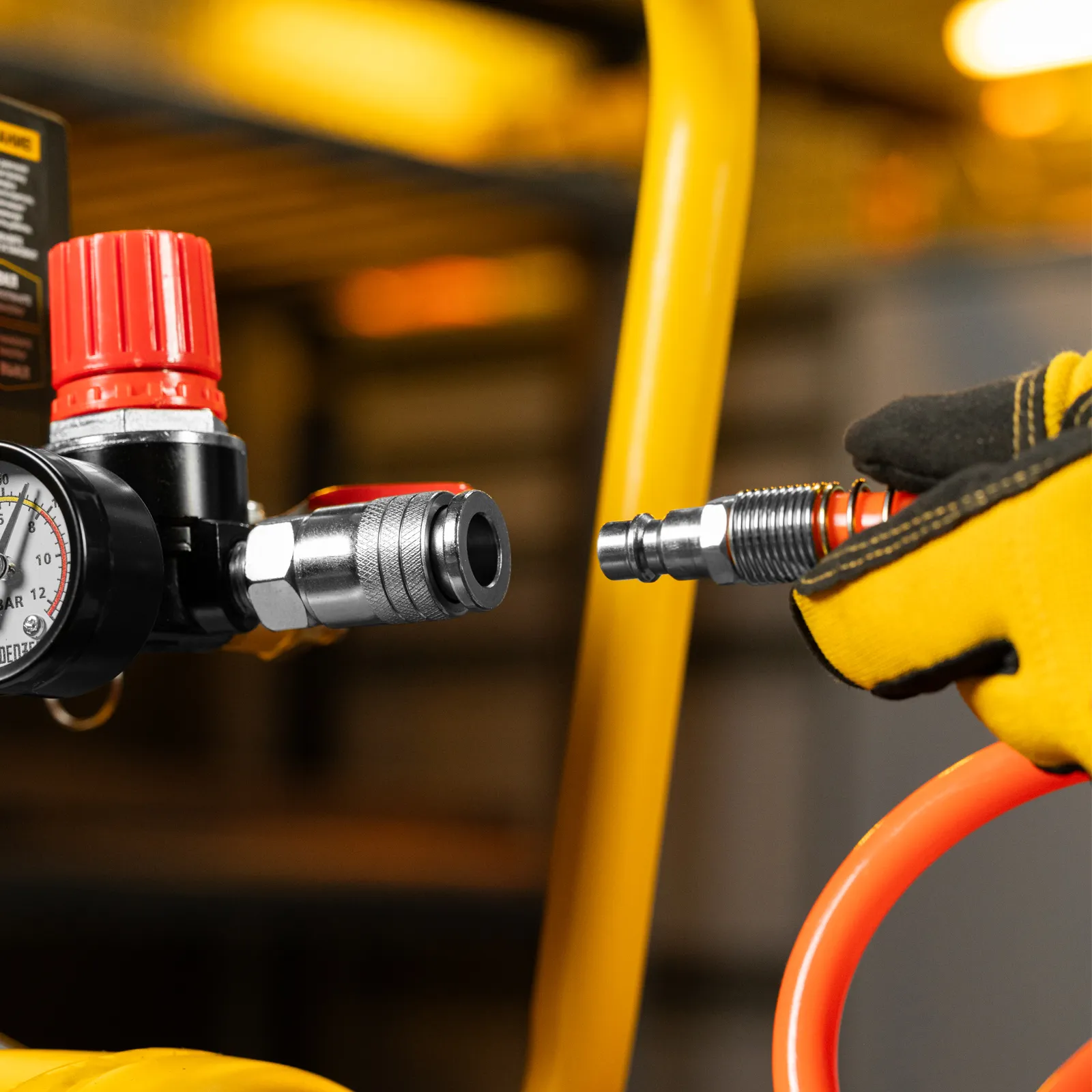 - Простое присоединение — благодаря быстросъемному коннектору подключение пневмоинструмента не занимает много времени.