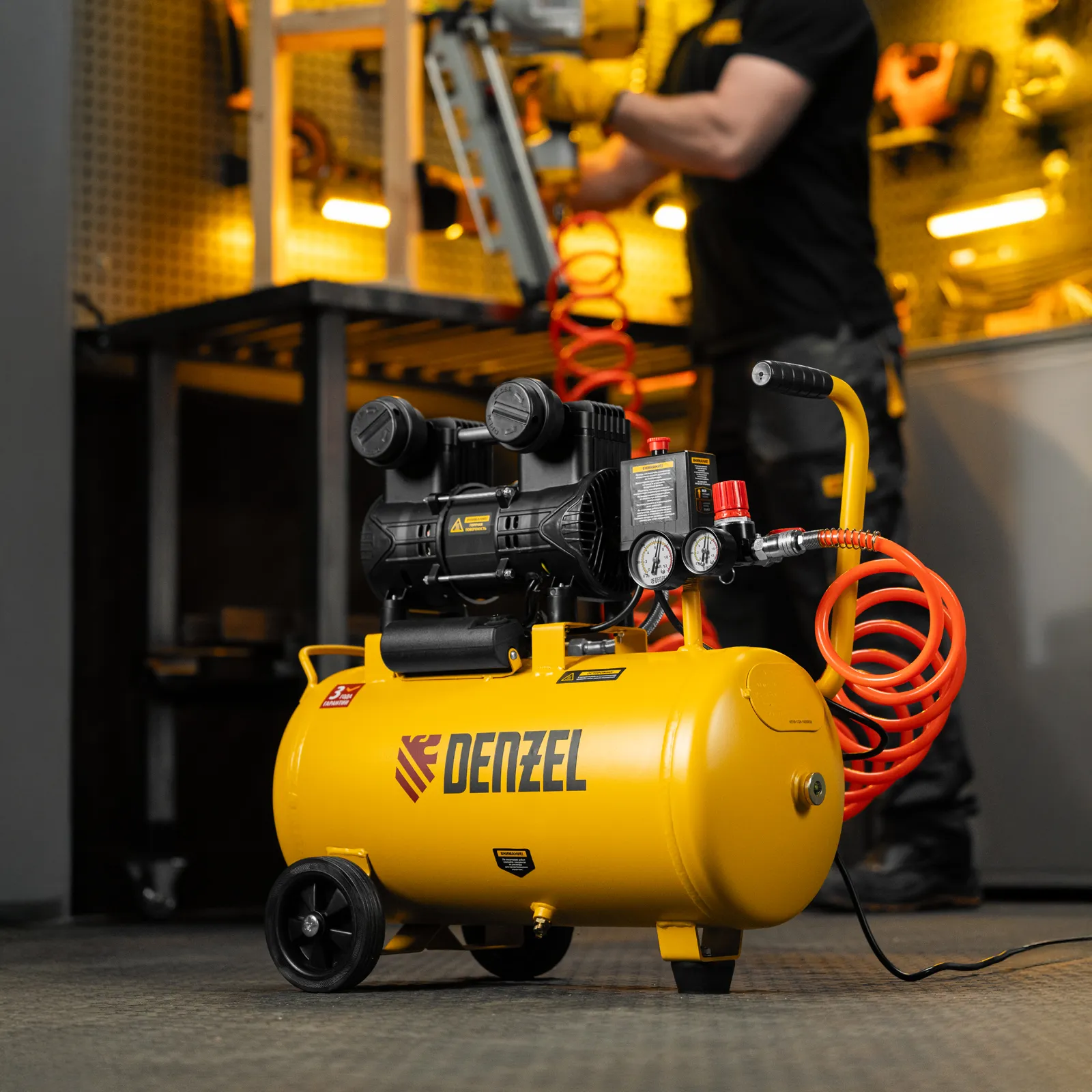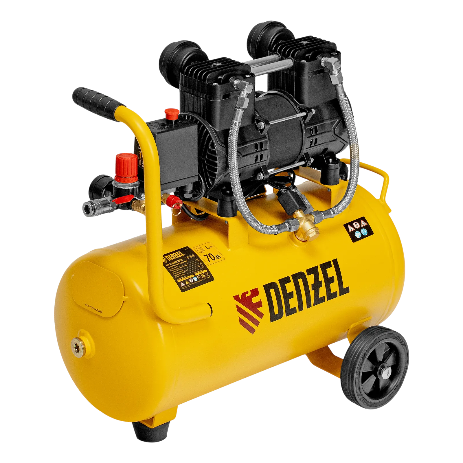 Безмасляный малошумный компрессор Denzel DLP-950/24 58142 мощностью 950 Вт и производительностью 170 л/мин, с ресивером объемом 24 л, оснащен двигателем со скоростью вращения 2850 об/мин. Предназначен для обеспечения пневмоинструмента сжатым воздухом. Для работы компрессора не требуется масло, поэтому он подходит для проведения покрасочных работ и продувки электронных компонентов. Прямой привод обеспечивает максимально эффективную работу и высокую производительность. Благодаря низкому уровню шума эксплуатация компрессора не вызывает ощущение дискомфорта.