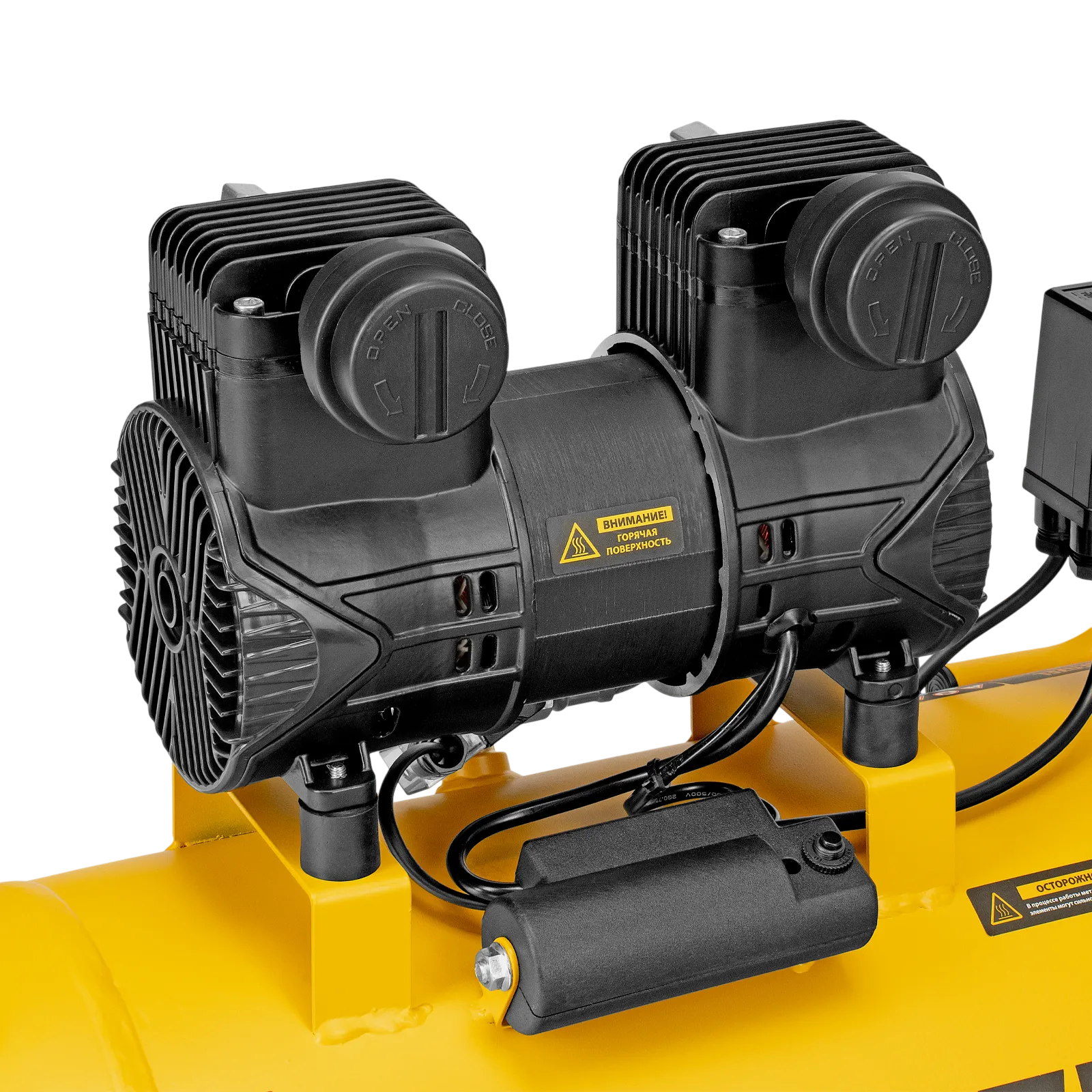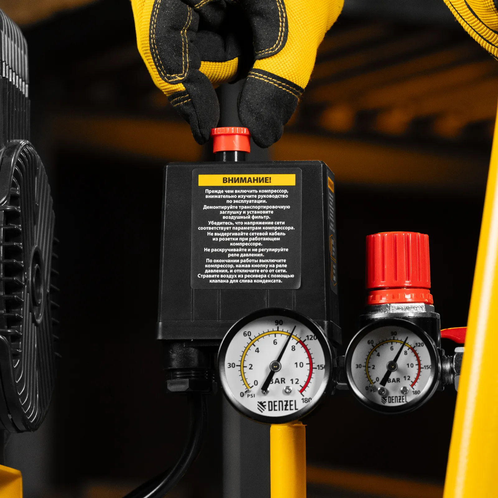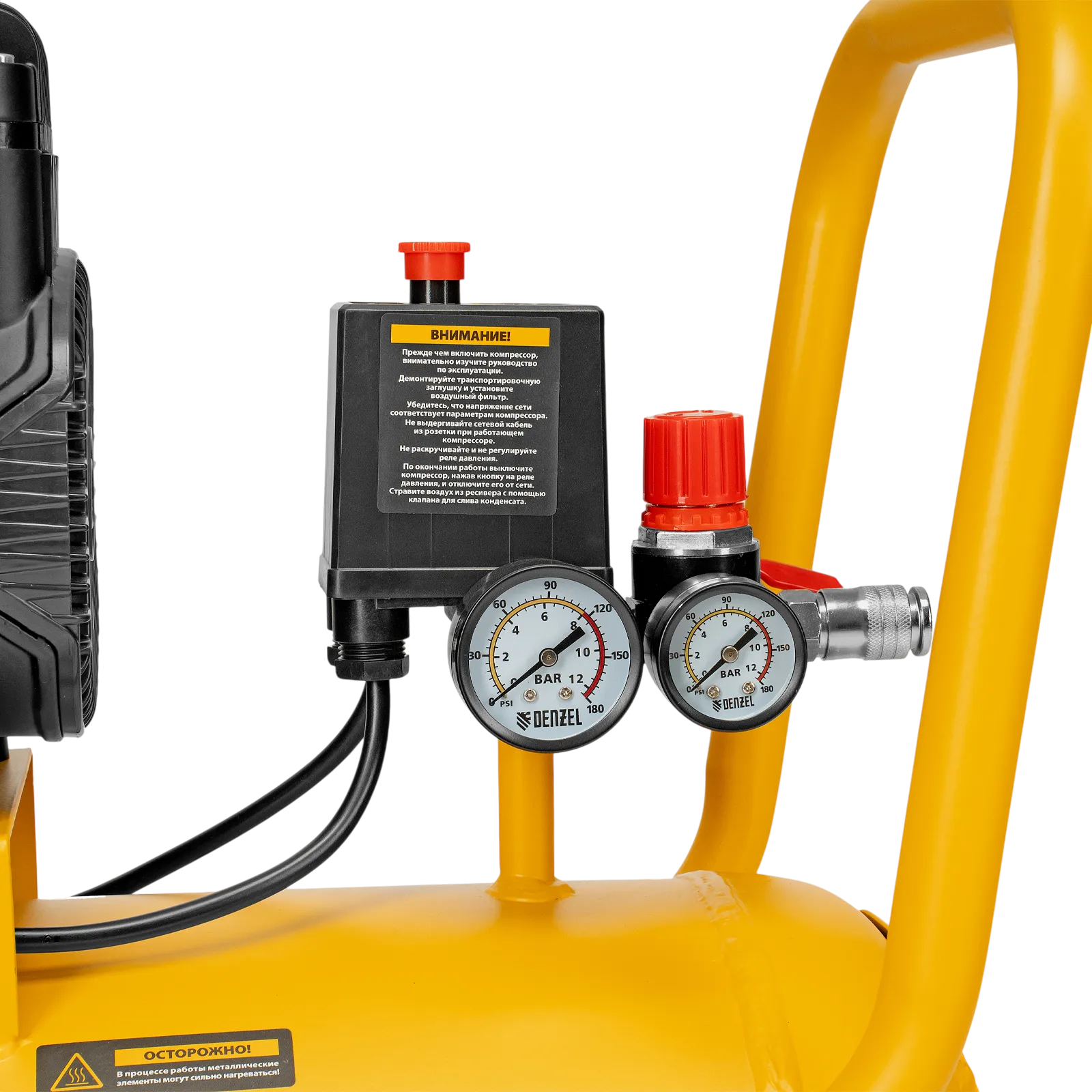 - Удобный контроль работы — компрессор оснащен 2 манометрами для отслеживания давления в ресивере и пневмолинии