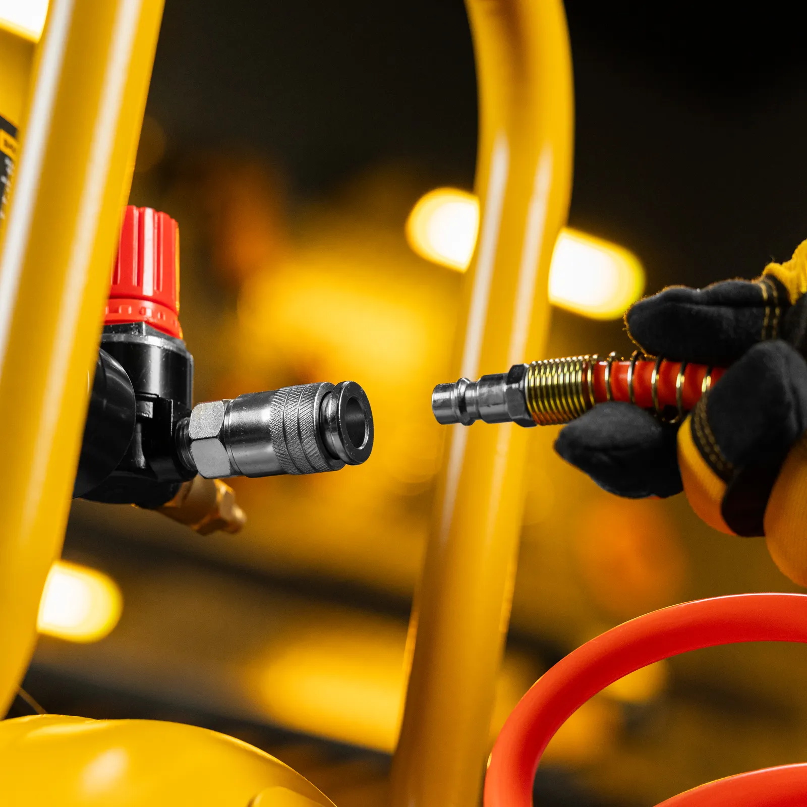 - Простое присоединение — благодаря быстросъемному коннектору подключение пневмоинструмента не занимает много времени.
