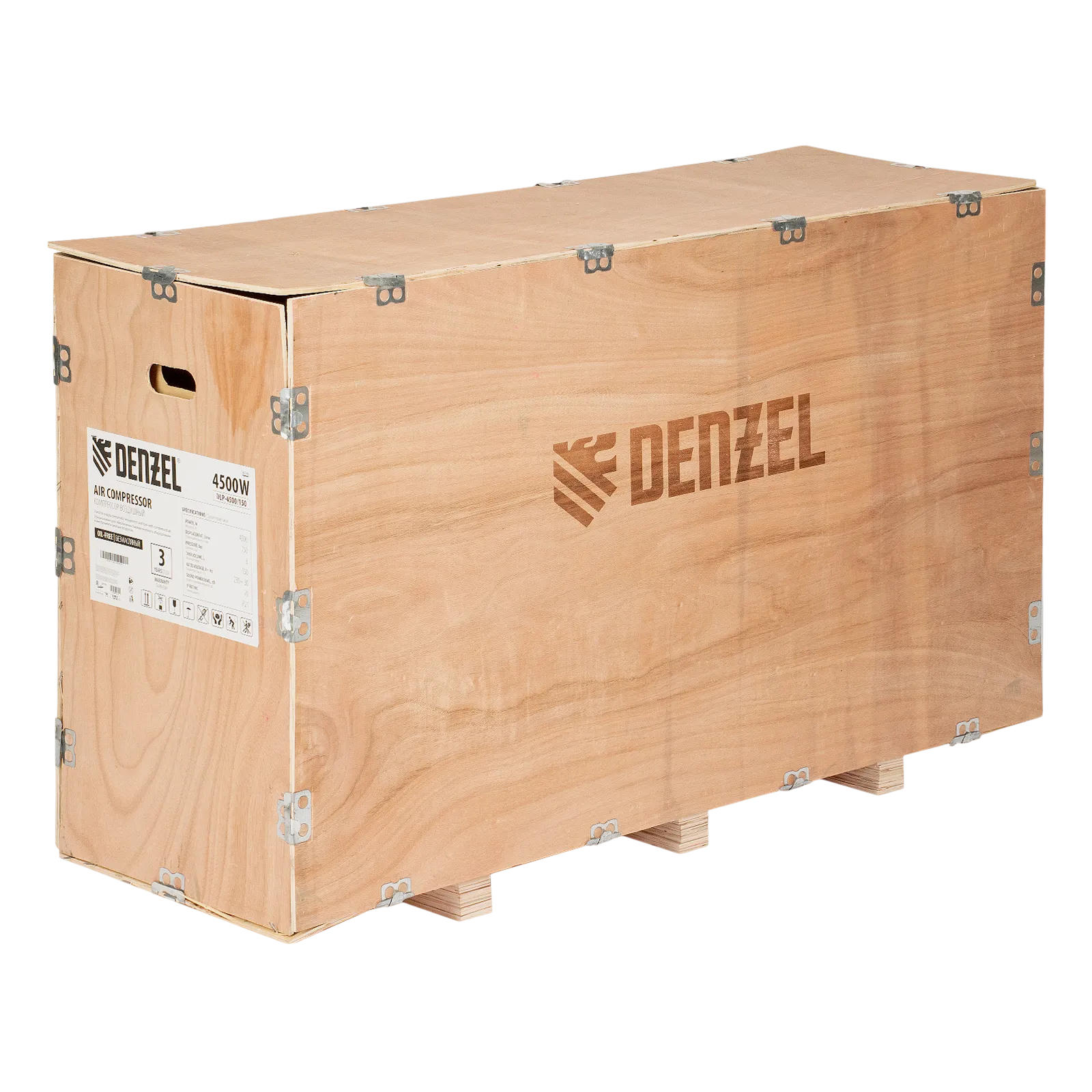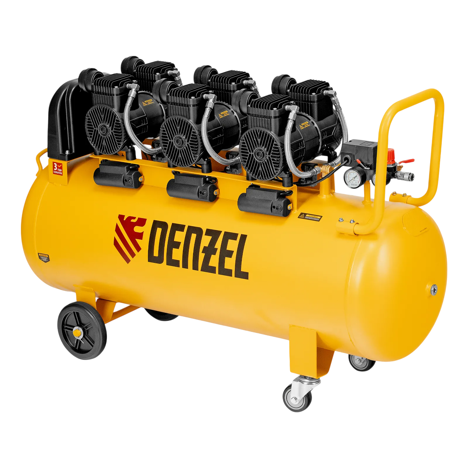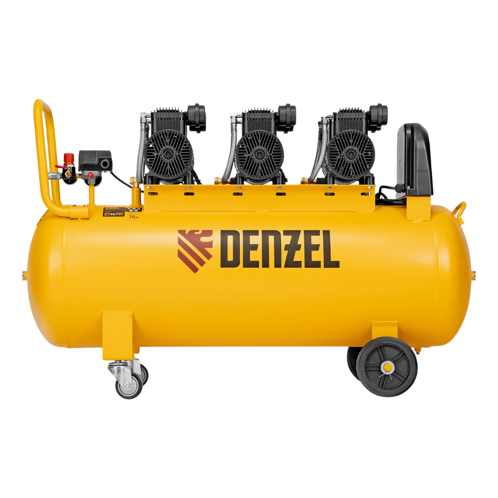 Безмасляный малошумный компрессор Denzel DLP-4500/150 58146 мощностью 4,5 кВт (3 x 1,5 кВт) и производительностью 750 л/мин, с ресивером объемом 150 л, оснащен двигателем со скоростью вращения 2850 об/мин. Предназначен для обеспечения пневмоинструмента сжатым воздухом. Для работы компрессора не требуется масло, поэтому он подходит для проведения покрасочных работ и продувки электронных компонентов. Прямой привод обеспечивает максимально эффективную работу и высокую производительность. Благодаря низкому уровню шума эксплуатация компрессора не вызывает ощущение дискомфорта.