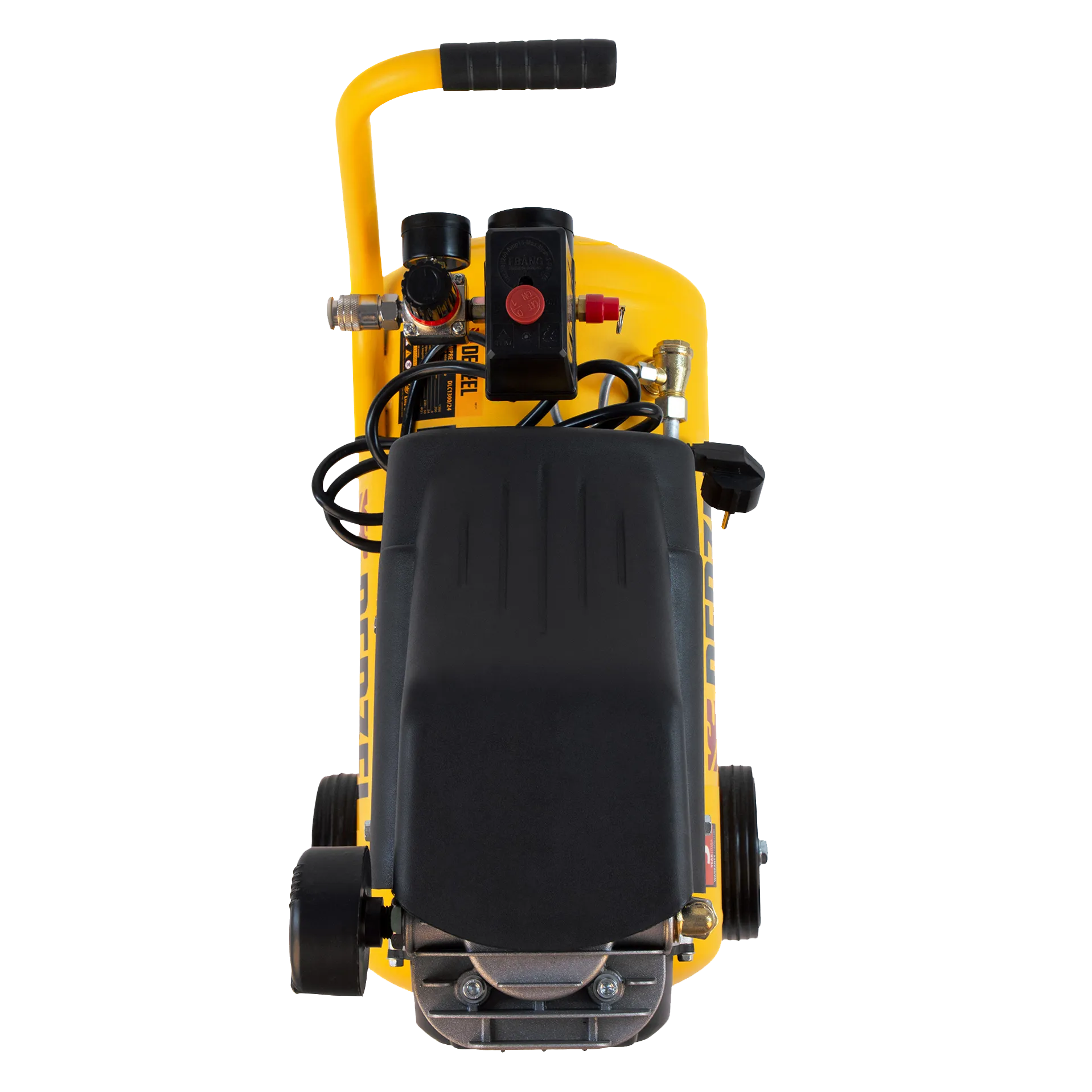 - Мобильность — компрессор, оснащенный ручкой и колесами, весит 22,6 кг, что упрощает его транспортировку.