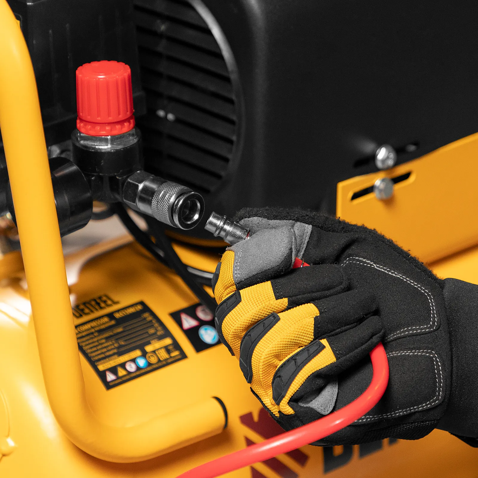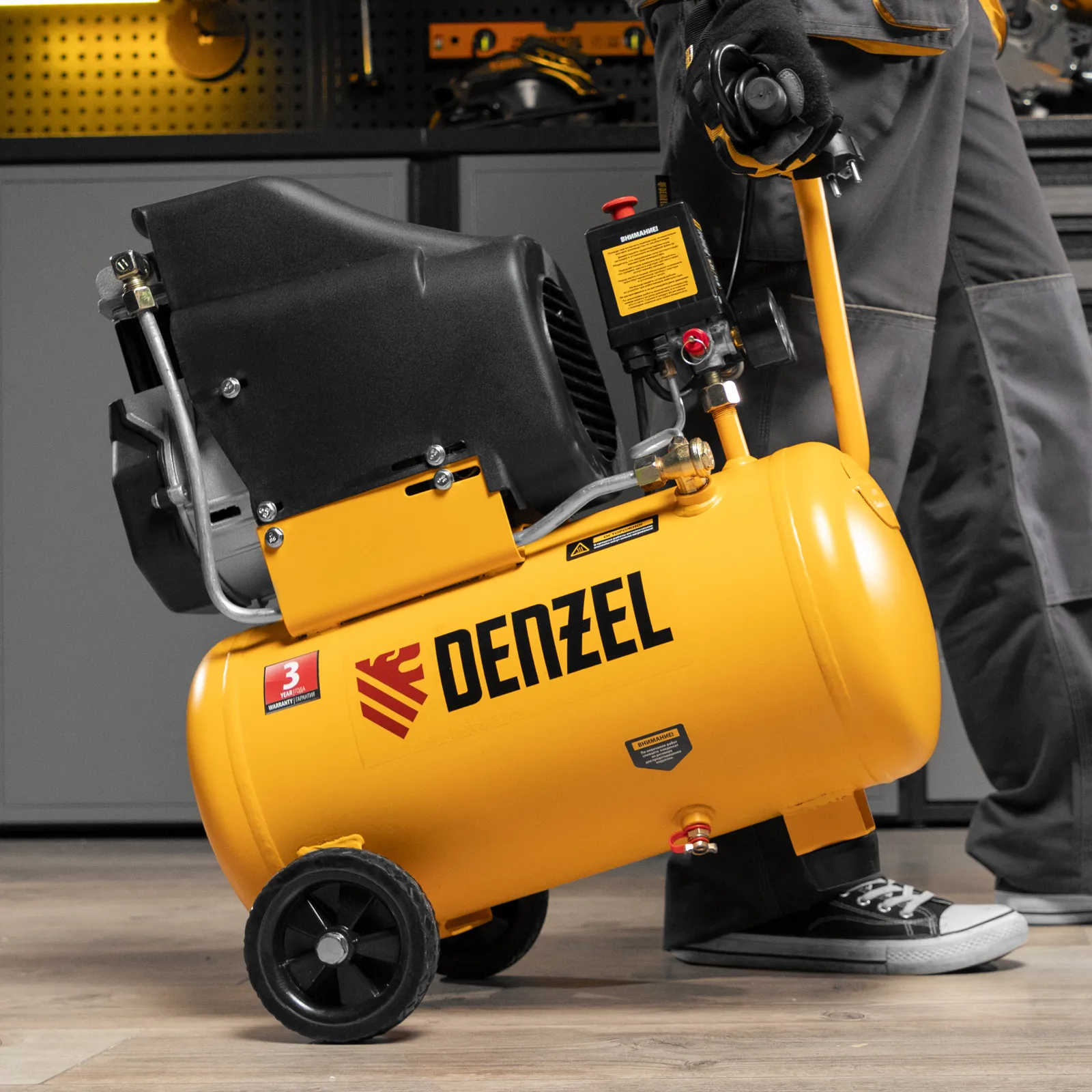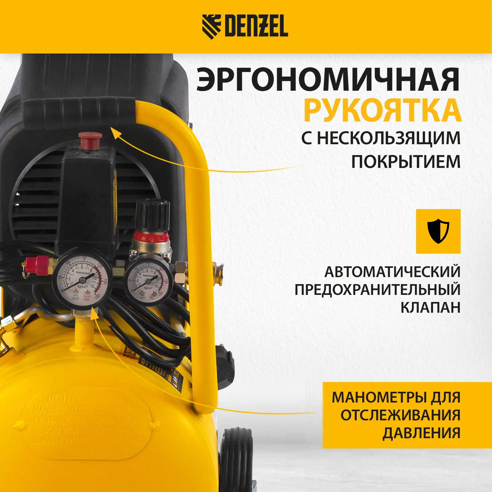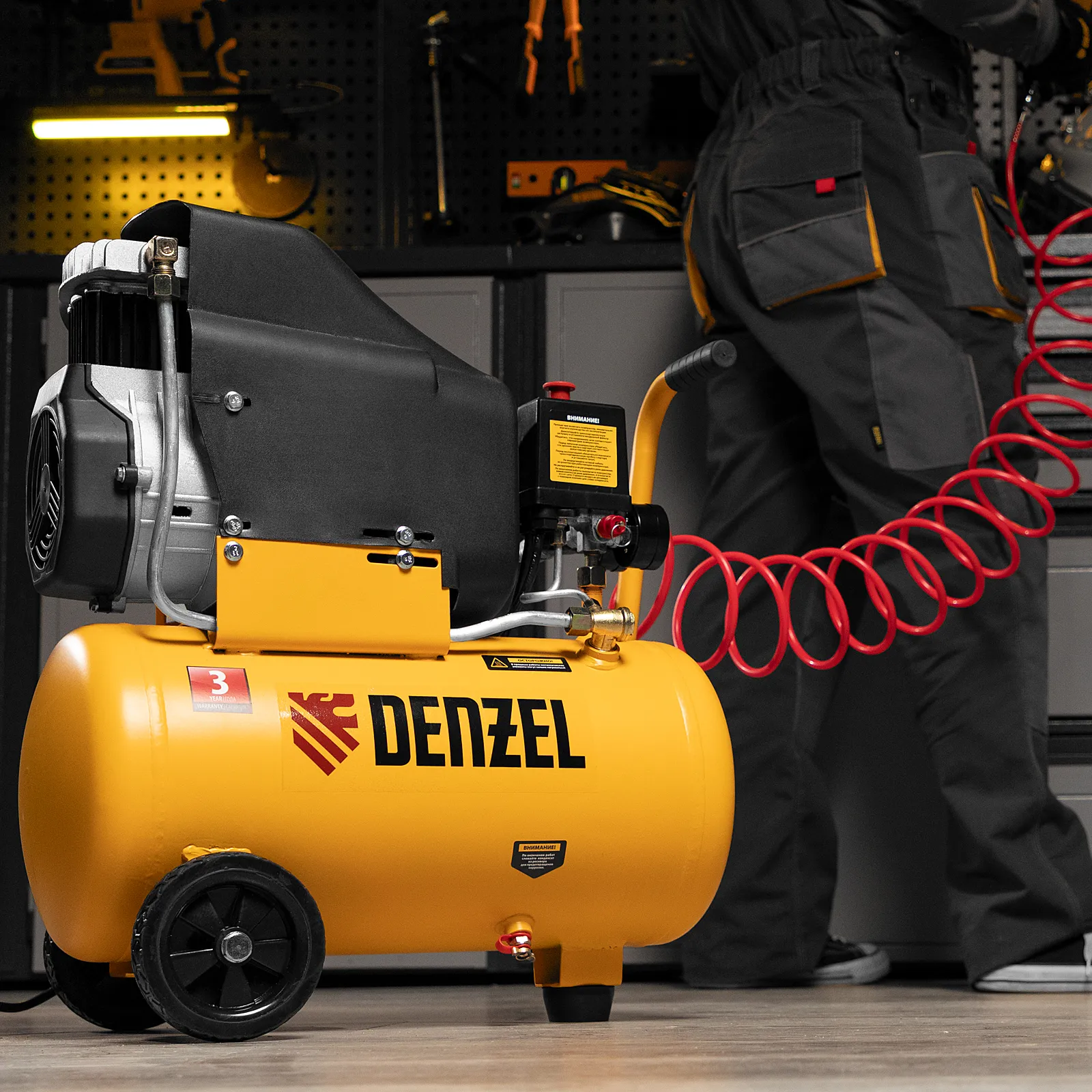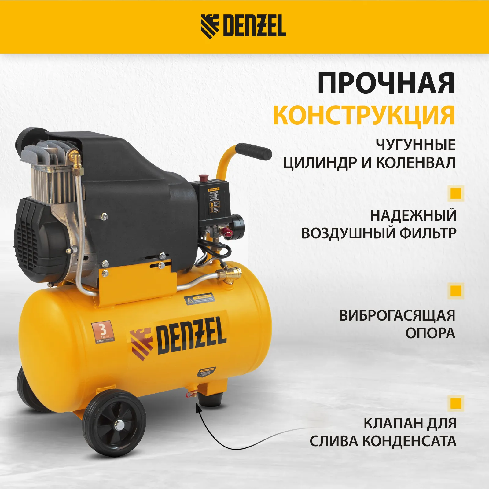 Безмасляный воздушный компрессор Denzel DLC1300/24 58171 мощностью 1,3 кВт, с объемом ресивера 24 л и производительностью на входе 206 л/мин, обеспечивает на выходе чистый сжатый воздух без примесей масла, что позволяет использовать его при окрашивании, креплении паркета и вагонки, продувке электронной техники, накачке шин. Подходит для обеспечения длительной работы пневмоаэрографа, пневмогравера, пневмошуруповерта, пневмодрели и пневмонейлера, а также другого пневмоинструмента. Быстроразъемный коннектор Euro (Rapid) упрощает подключение пневмомагистрали.