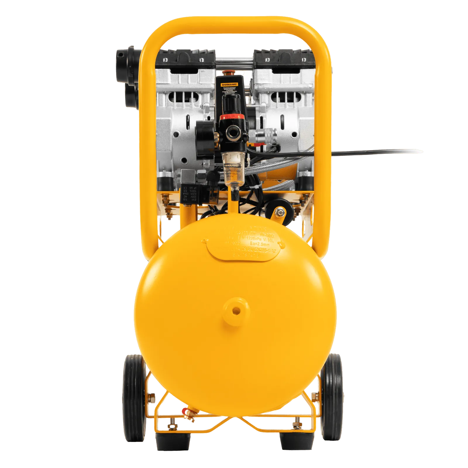 - Мобильность — компрессор оборудован ручкой и 2 колесами для удобного перемещения.