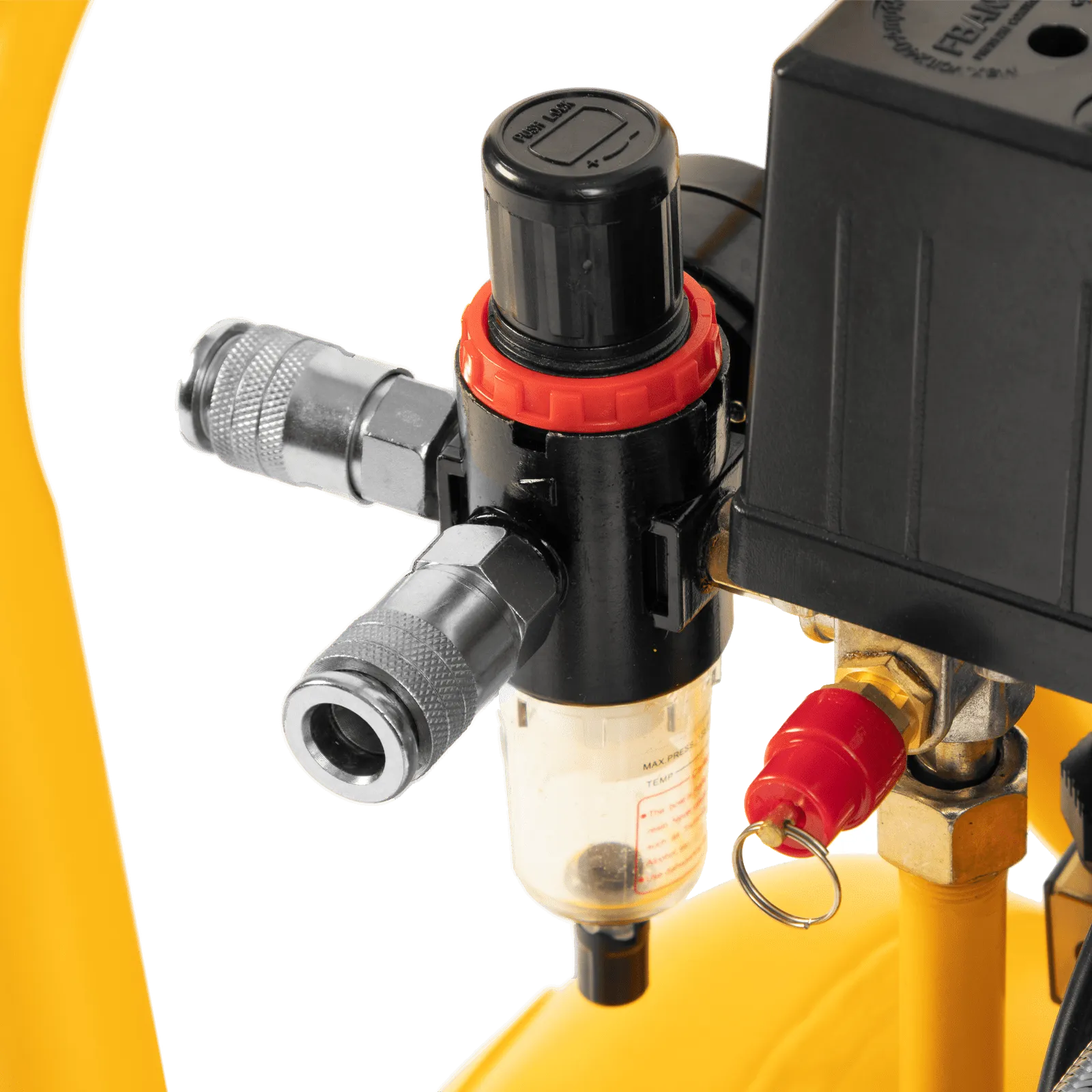 - Высокое качество очистки воздуха — фильтры надежно задерживают посторонние частицы, а влагоотделитель препятствует попаданию конденсата в пневмомагистраль.