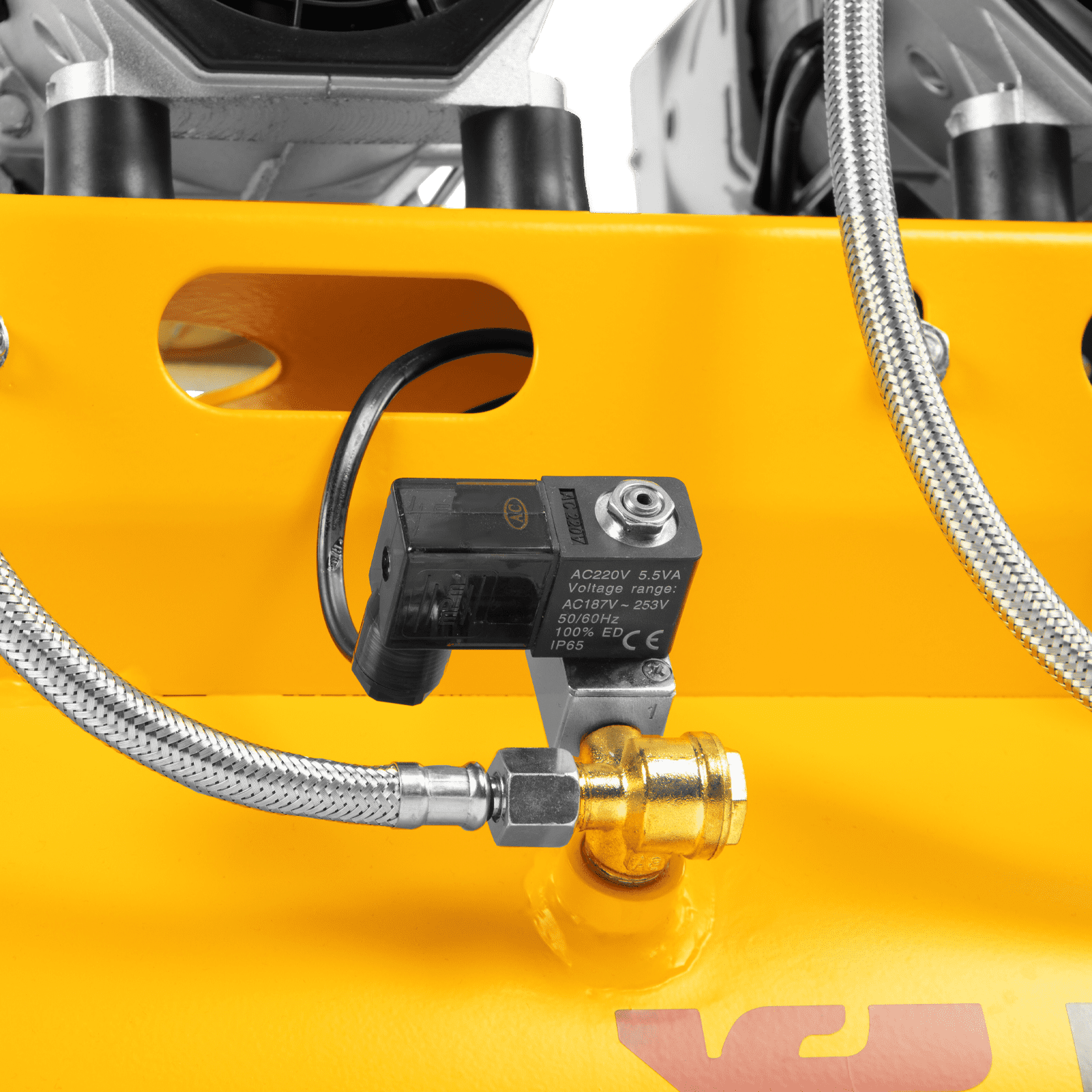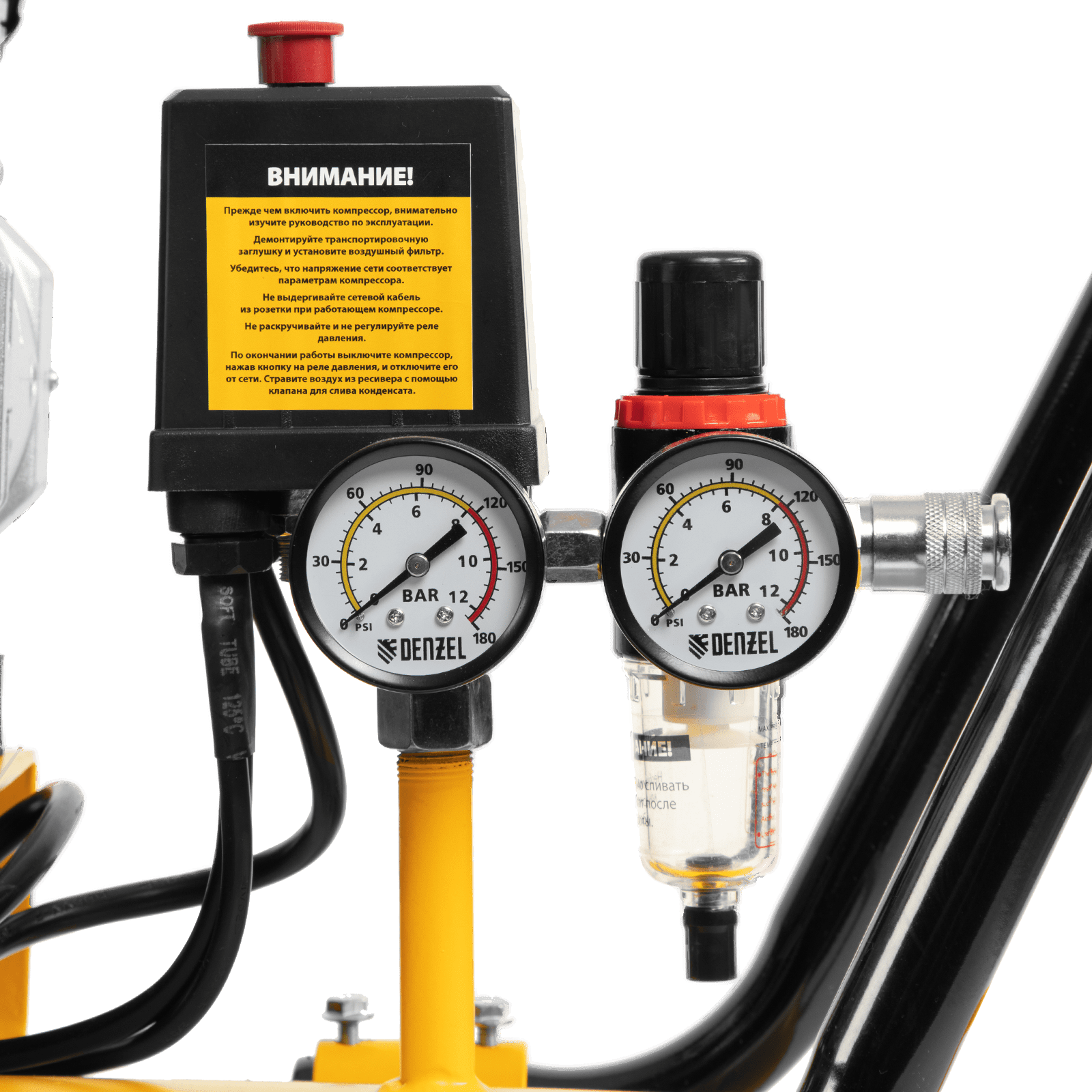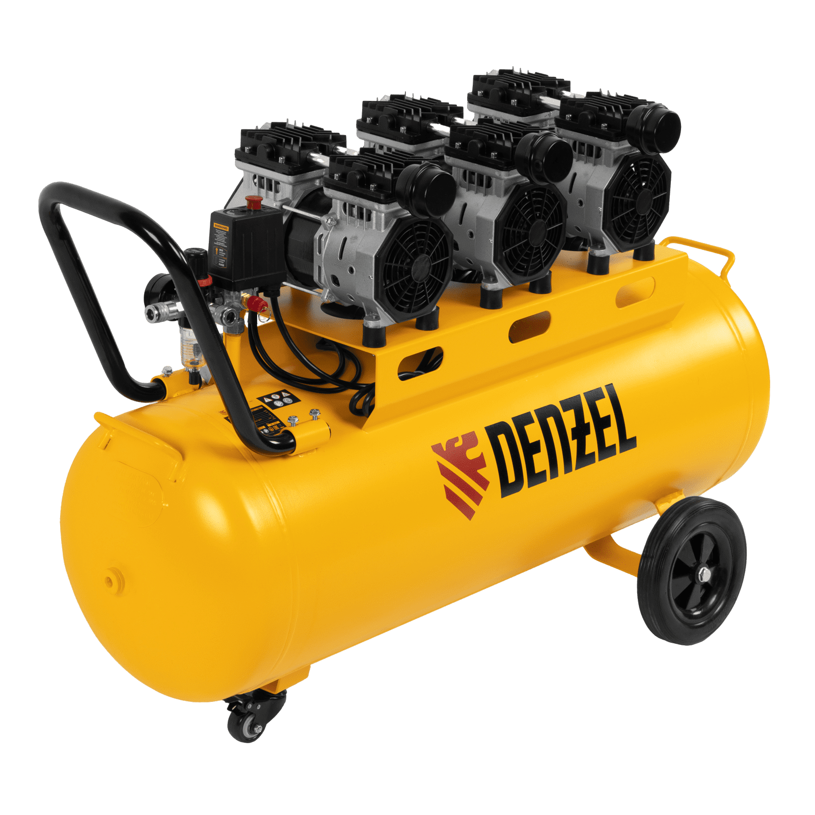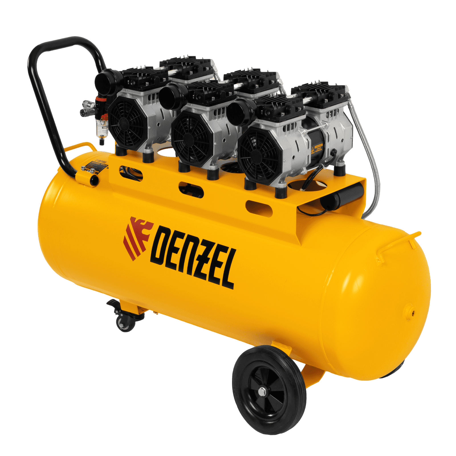 Безмасляный малошумный компрессор Denzel DLS 1800/100 58028 мощностью 1800 (3 х 600) Вт, объемом ресивера 100 л и производительностью 345 л/мин предназначен для обеспечения пневмоинструмента сжатым воздухом, подаваемым под давлением до 8 бар. Позволяет подключить пневматический заклепочник, дрель, шлифмашину и т.д. Оптимален для работы с краскопультом и для продувки электронных компонентов, т. к. в сжатом воздухе отсутствуют частицы масла. Компрессор пригодится в мастерской, гараже, на строительной площадке.