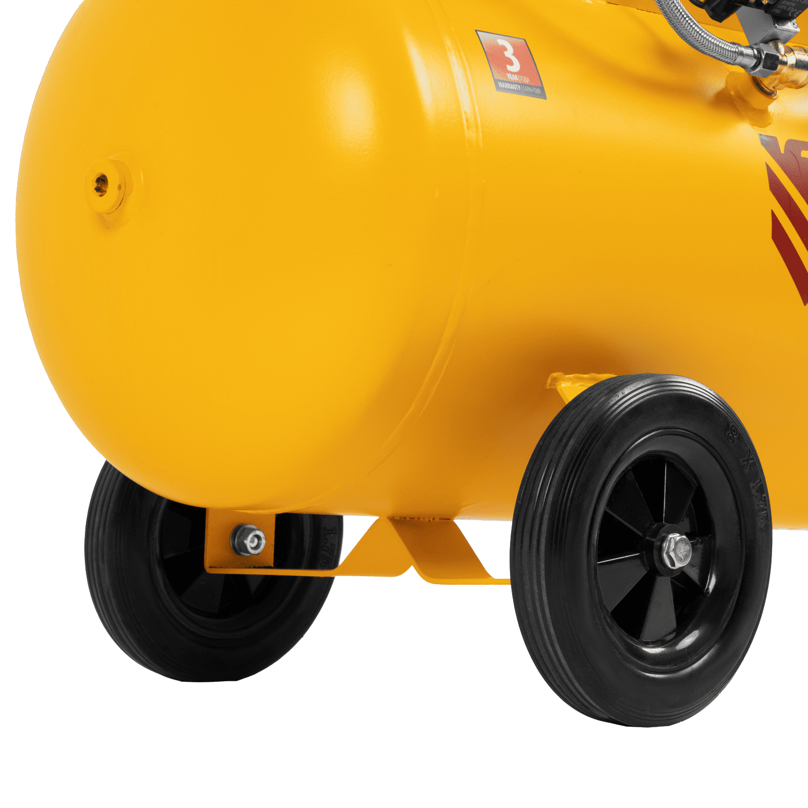 - Мобильность — компрессор оборудован ручкой и 3 колесами (из них 1 поворотное) для удобного разворота и перемещения.
