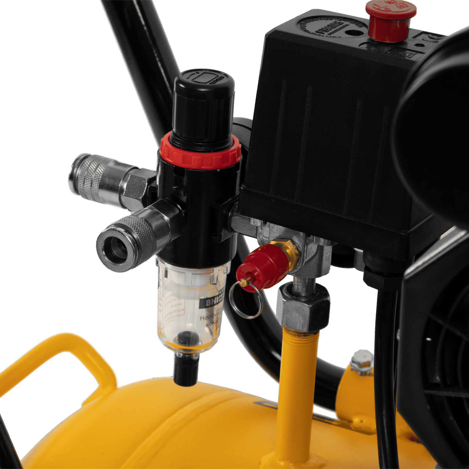 - Контроль давления в ресивере и на выходной магистрали — компрессор оборудован двумя манометрами.