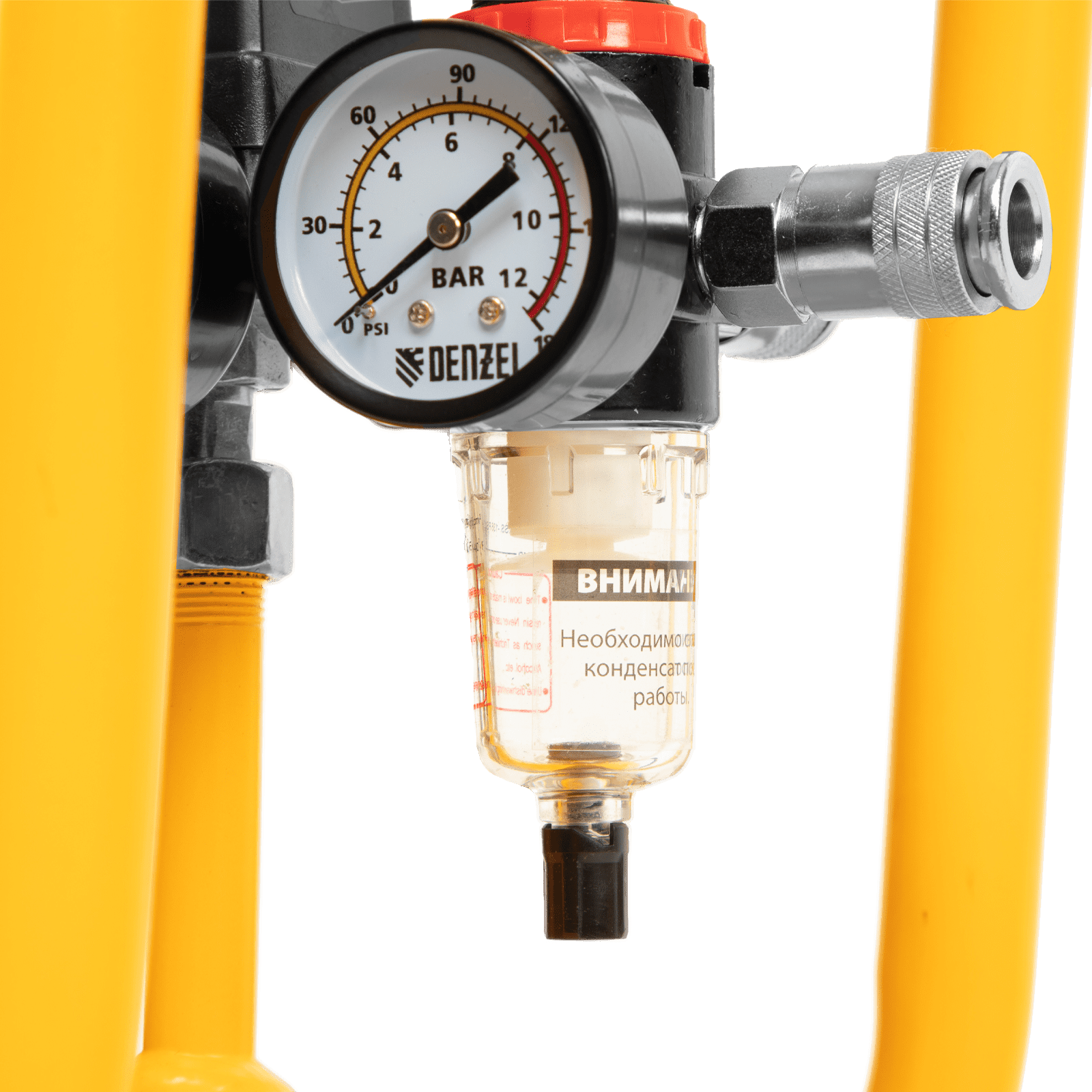 - Регулятор давления на выходе — можно выбрать оптимальный режим подачи воздуха в соответствии с характеристиками пневмоинструмента.