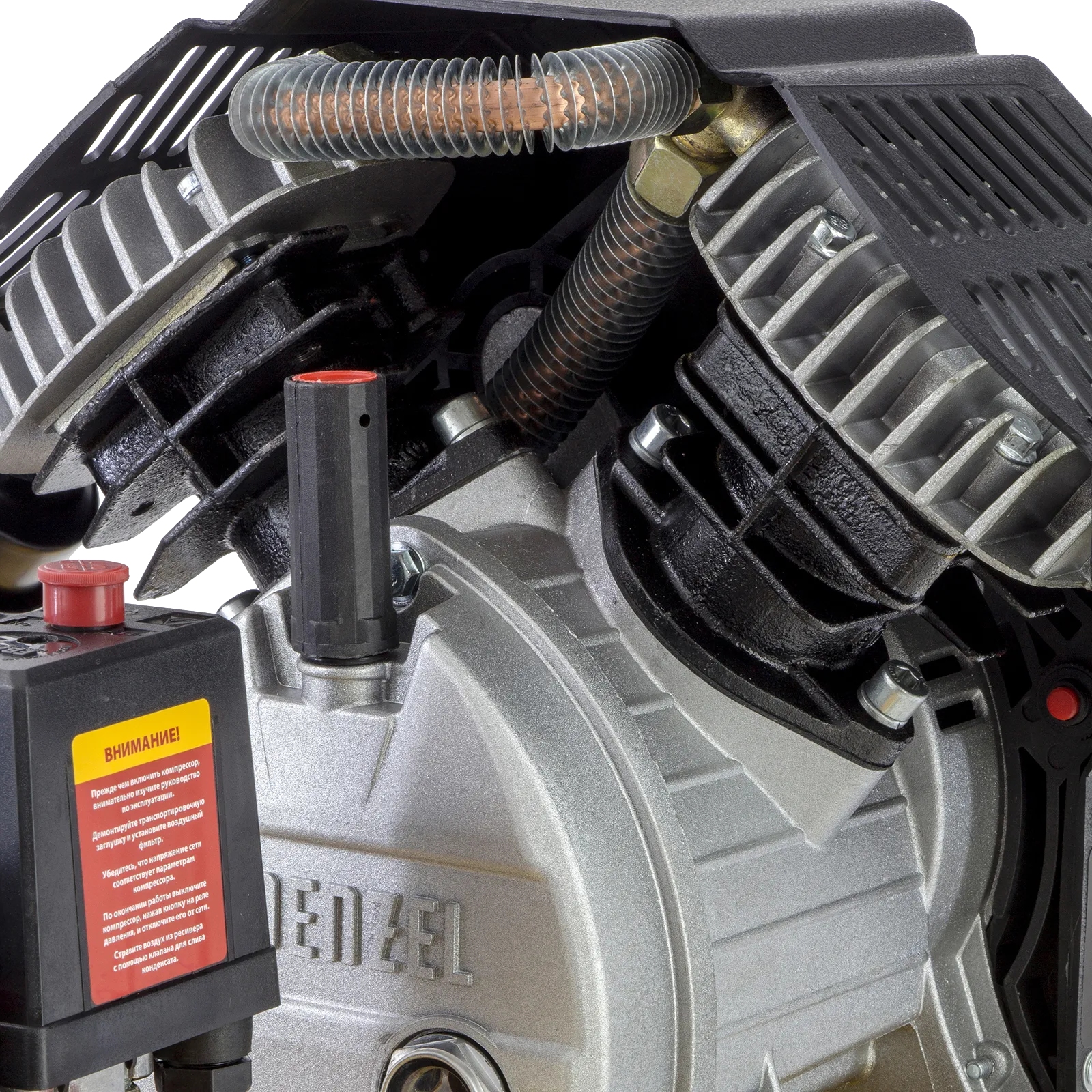 - Надежные опоры — резиновые ножки обеспечивают устойчивость компрессора и эффективно поглощают вибрации.