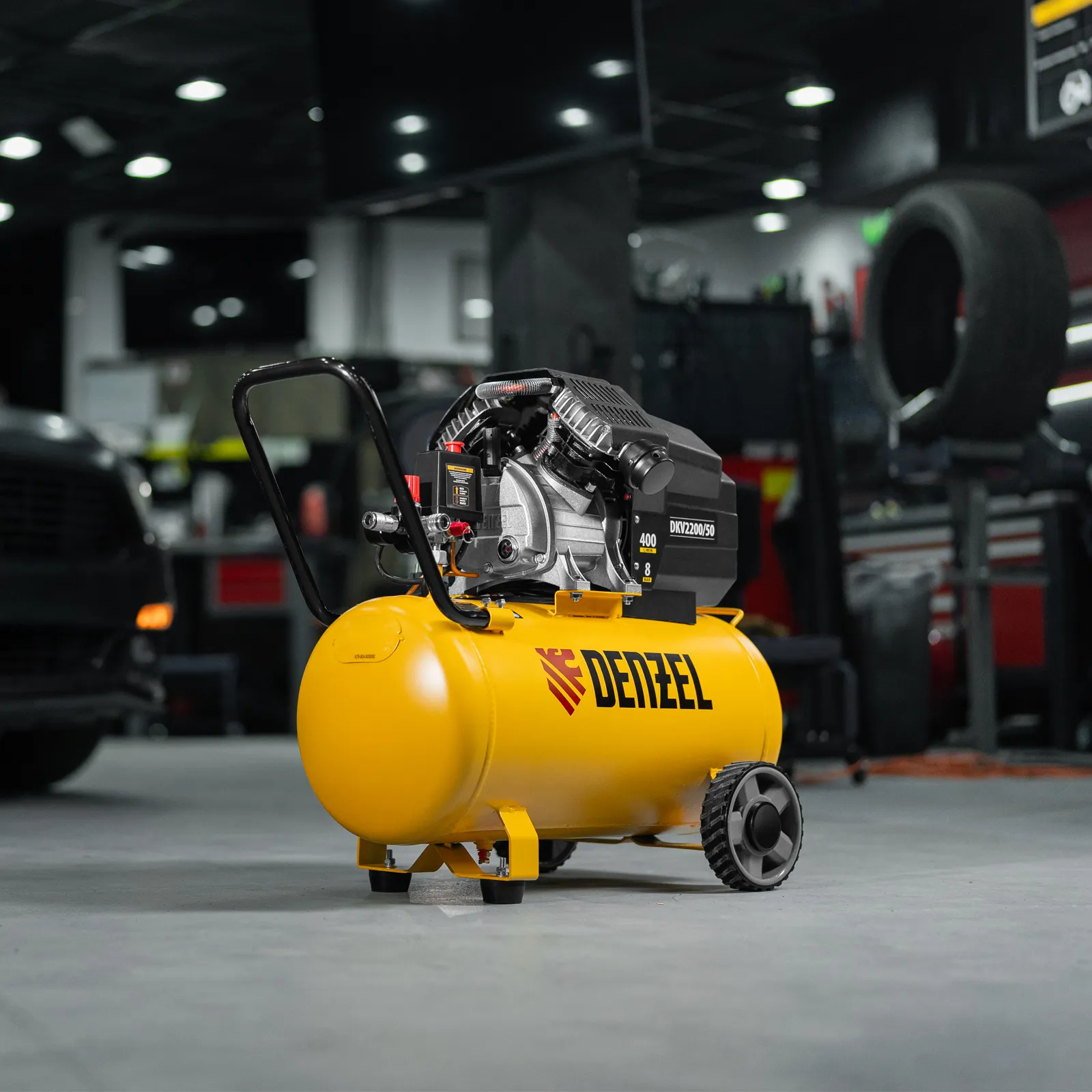 Воздушный компрессор Denzel DKV2200/50 Х-PRO 58083 мощностью 2,2 кВт, с объемом ресивера 50 л сжимает за минуту до 400 л воздуха и предназначен для применения в быту, на станции СТО и строительной площадке. Используется для обеспечения сжатым воздухом пневмоинструмента, например, пневмозубила, пневмогайковерта, пневмомолотка, пневмодрели. 2 евроконнектора позволяют подключить одновременно несколько инструментов для повышения эффективности работы.