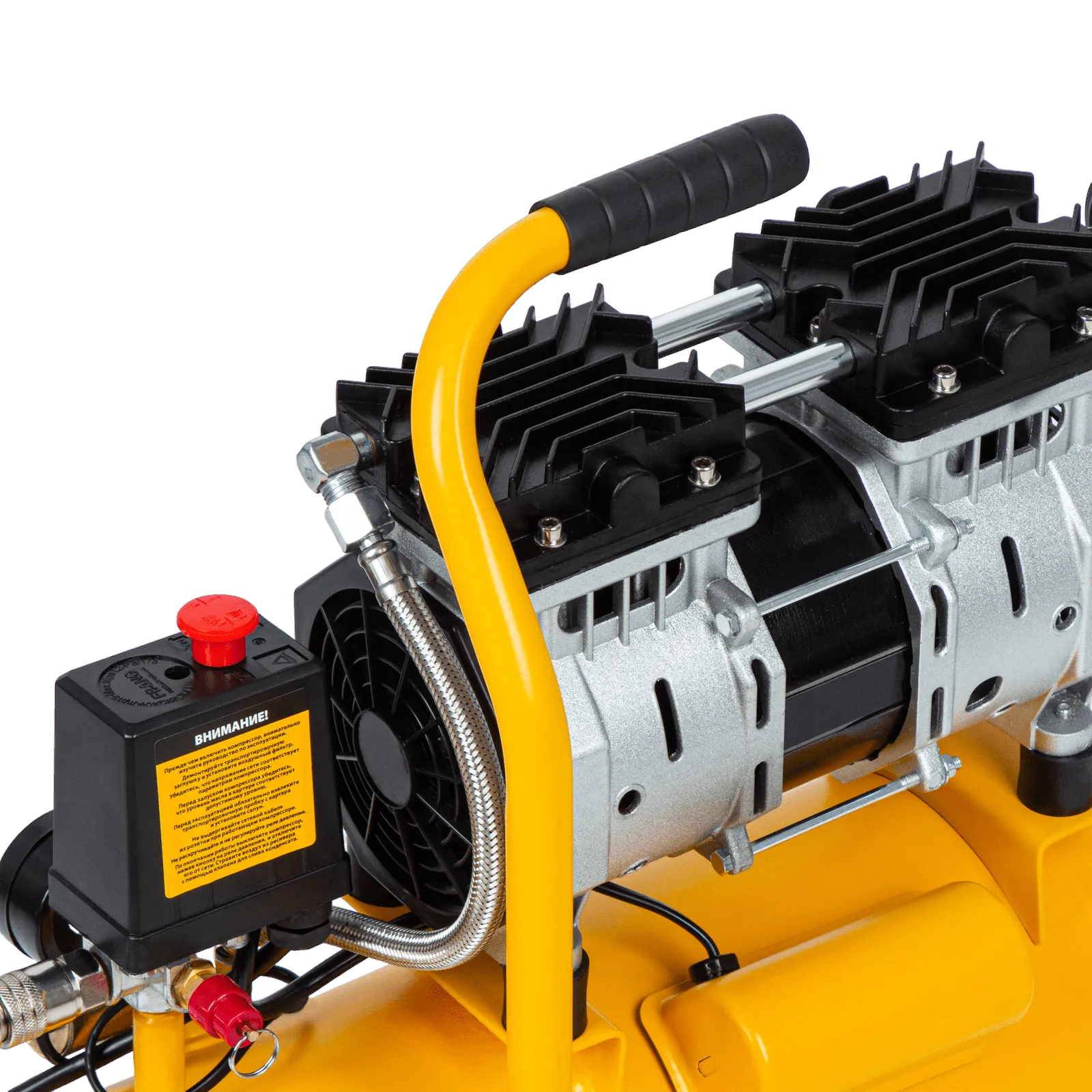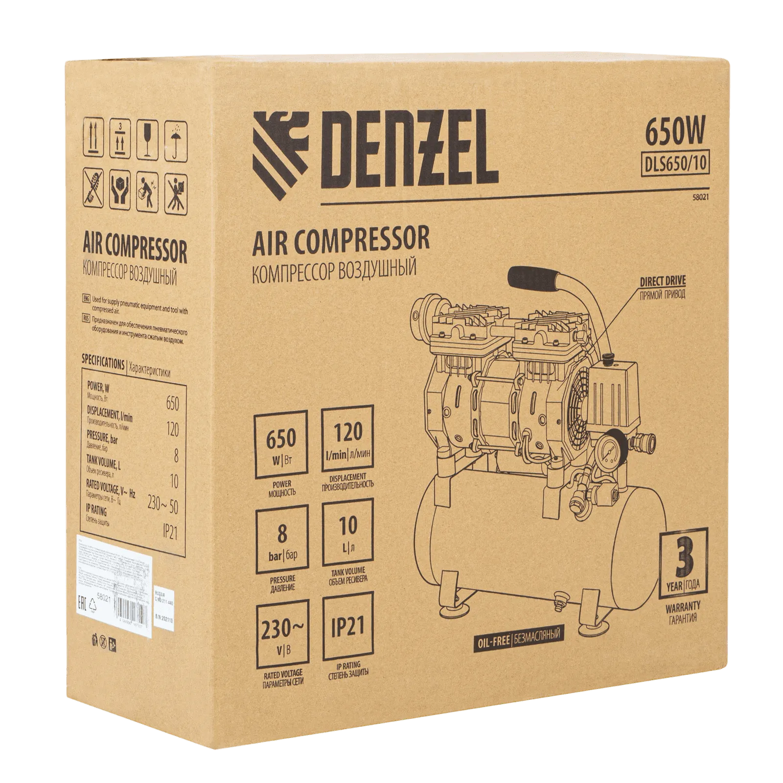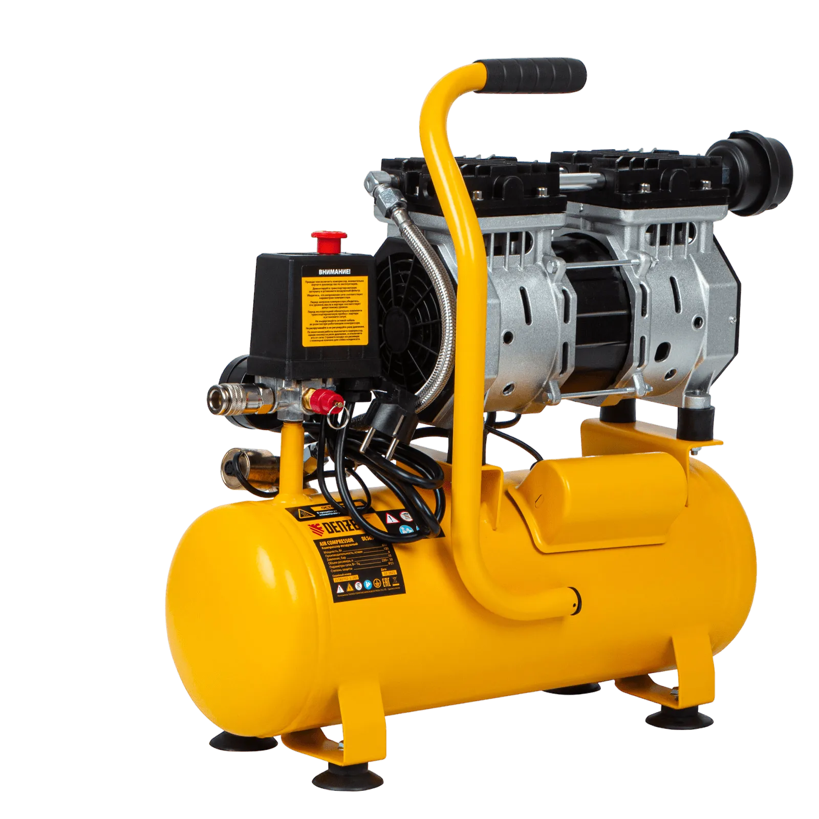 Компрессор предназначен для использования как в домашних условиях, так и в автосервисах, на строительных площадках и при производстве мебели. Производство сжатого воздуха осуществляется без масла и не наносит урон экологии. На выходе не нужно иметь дело с масляным туманом, что очень важно при проведении малярных работ. К компрессору могут быть подключены краскопульты, пневмограверы и пневмонейлеры, простые пневмоинструменты для подкачки шин, продувки техники или отдельных деталей.;При мощности 650 Вт компрессор работает очень тихо за счет двухцилиндровой компоновки и низких оборотов двигателя (1400 об/мин), громкость снижена до уровня холодильника. Коаксиальный привод обеспечивает стабильную подачу сжатого до 8 атм. воздуха со скоростью 120 л/мин в компактный ресивер емкостью 10 литров.