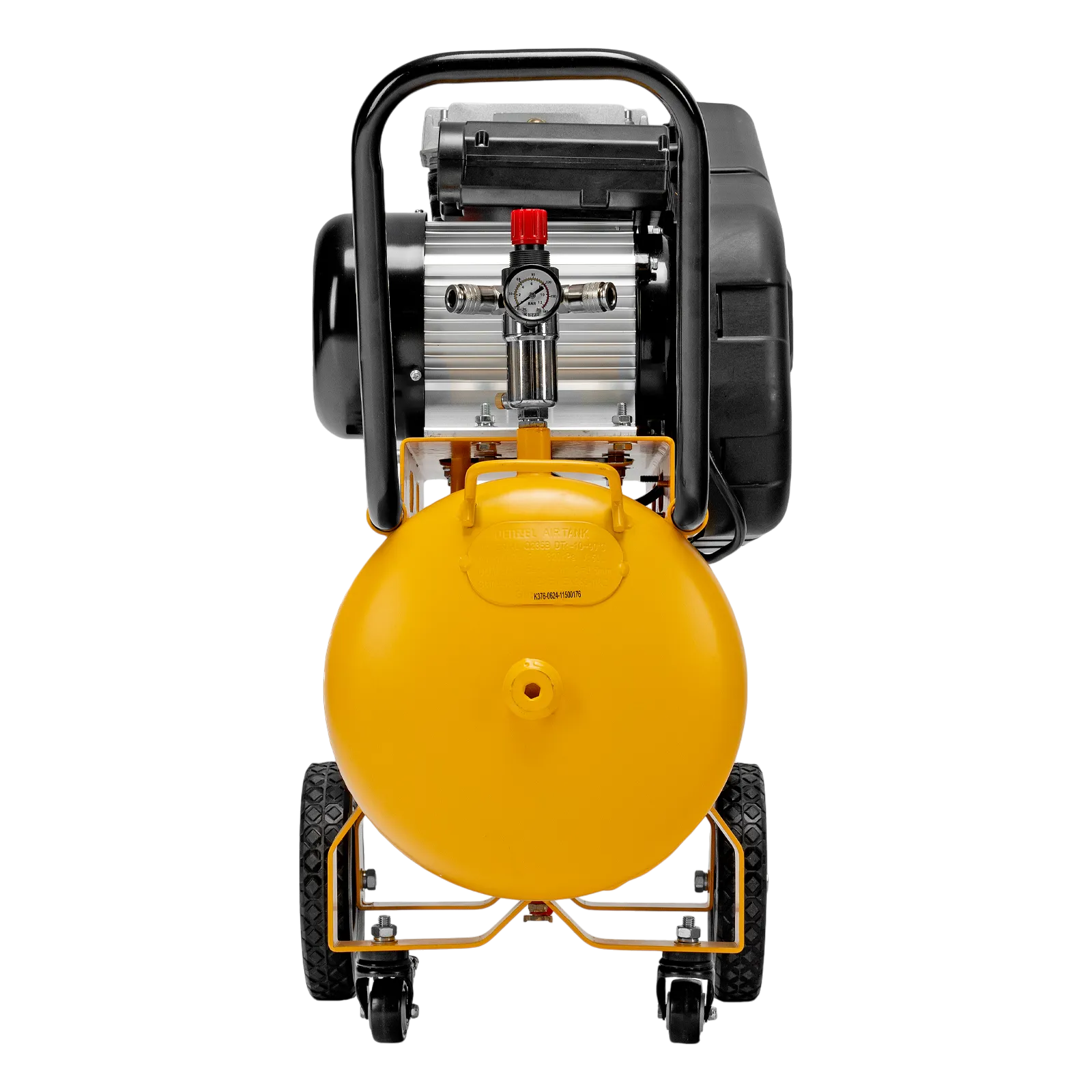 - Удобный контроль давления в ресивере и пневмомагистрали — компрессор оснащен двумя механическими манометрами.