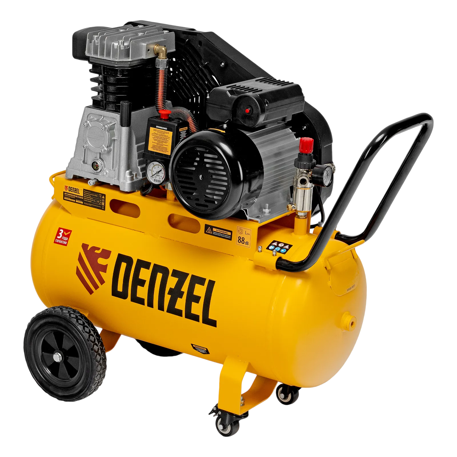 Воздушный компрессор Denzel BCI 2100/50 58115 с ременным приводом, мощностью 2,1 кВт и производительностью 400 л/мин, с ресивером объемом 50 л, — источник сжатого воздуха для работы с пневмоинструментом: пневмогайковертом, пневмодрелью, краскопультом, углошлифовальной машиной и т.д. Для подключения инструмента предусмотрено 2 быстросъемных коннектора Рапид (Евро). Специальный порт позволяет подключить напрямую дополнительный ресивер или пневмомагистраль. Компрессор будет полезен на строительной площадке и станции техобслуживания.
