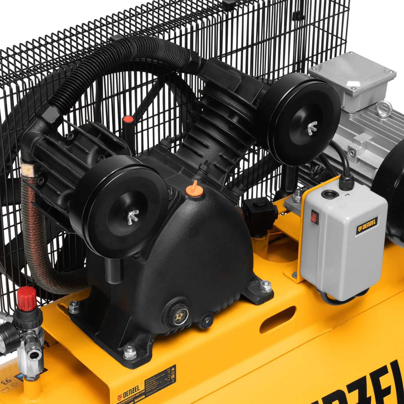 Воздушный компрессор Denzel BCV 4000-T/200 58120 с ременным приводом, мощностью 4,0 кВт и производительностью 690 л/мин, с ресивером объемом 200 л, — источник сжатого воздуха для работы с пневмогайковертом, пневмодрелью, краскопультом, углошлифовальной машиной или другим пневмоинструментом. Двигатель с медной обмоткой обеспечивает стабильную работу в течение длительного времени. Для подключения инструмента предусмотрено 2 быстросъемных коннектора Рапид (Евро) и штуцер «елочка» с краном. Специальный порт позволяет подключить напрямую дополнительный ресивер или пневмомагистраль. Компрессор отличается высокой производительностью и будет полезен на строительной площадке и станции техобслуживания.
