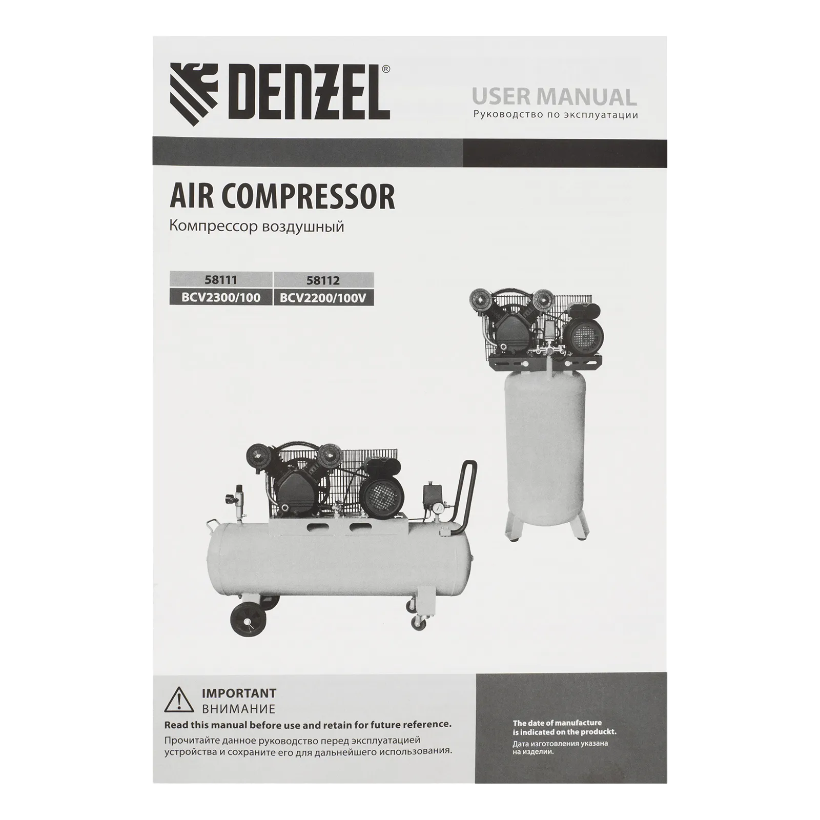 - Высокий ресурс — модель BCV2300/100 оснащена надежным чугунным цилиндром и износостойким поршневым блоком с эффективным охлаждением.