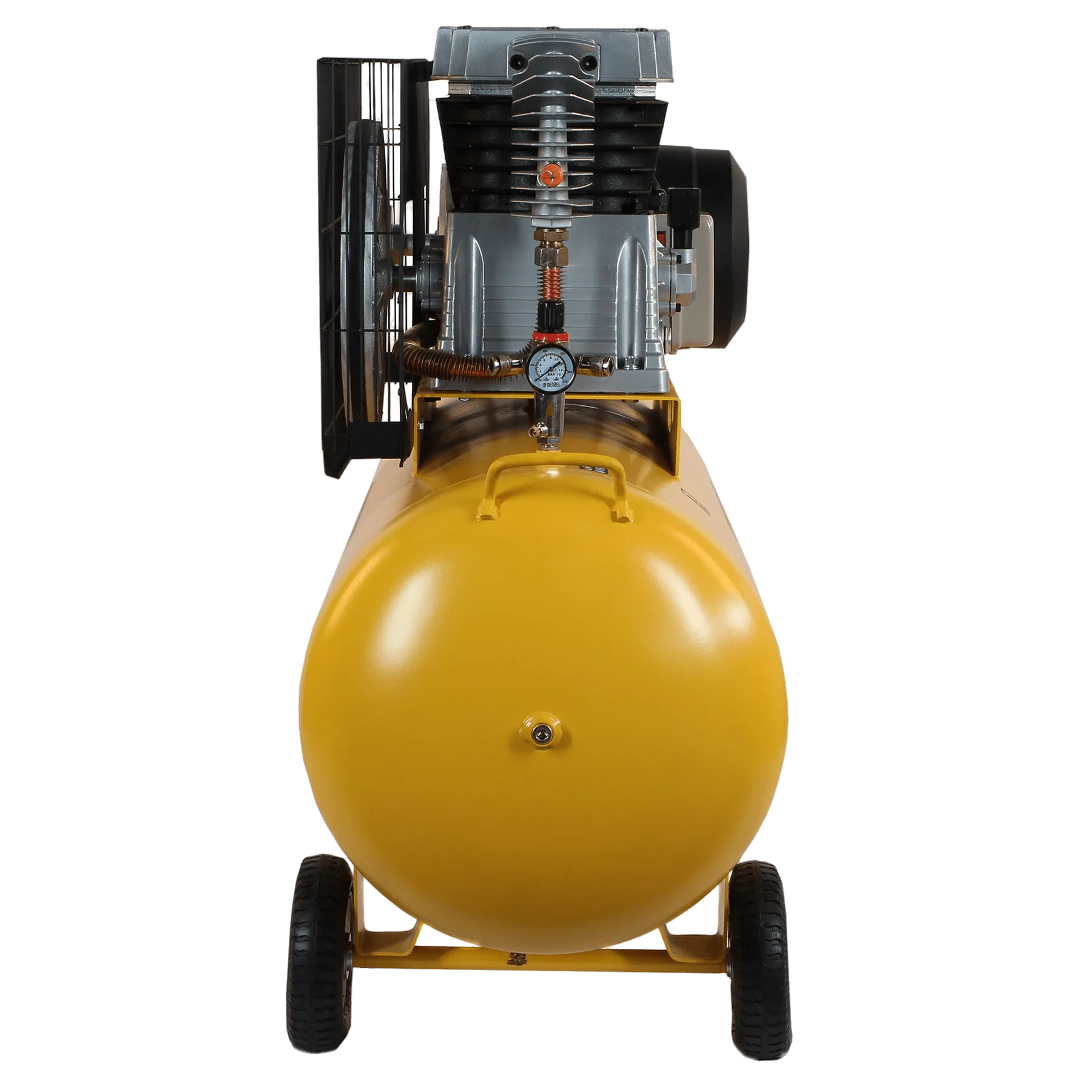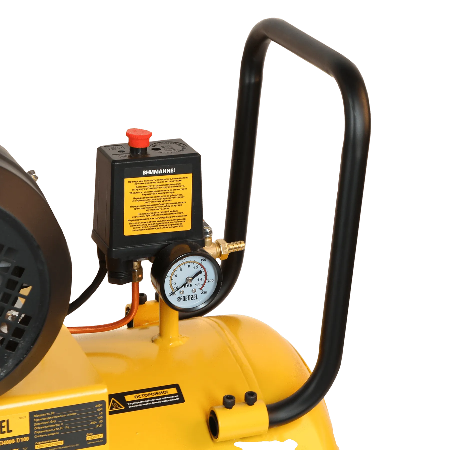 Воздушный компрессор Denzel BCI5500-T/270 58129 мощностью 5,5 кВт, с ресивером объемом 270 л, сжимает 850 литров воздуха в минуту и подает его к пневмоинструменту. К компрессору можно подключить пневмодрель, пневмогайковерт, пневмостеплер, пневмошуруповерт и другое оборудование. Благодаря ременному приводу он легко выдерживает интенсивные нагрузки, поэтому его можно использовать на строительной площадке или в автомастерской. Увеличенный ресивер обеспечивает большой запас сжатого воздуха, что позволяет уменьшить частоту включений мотора и снизить нагрузку на компрессор.