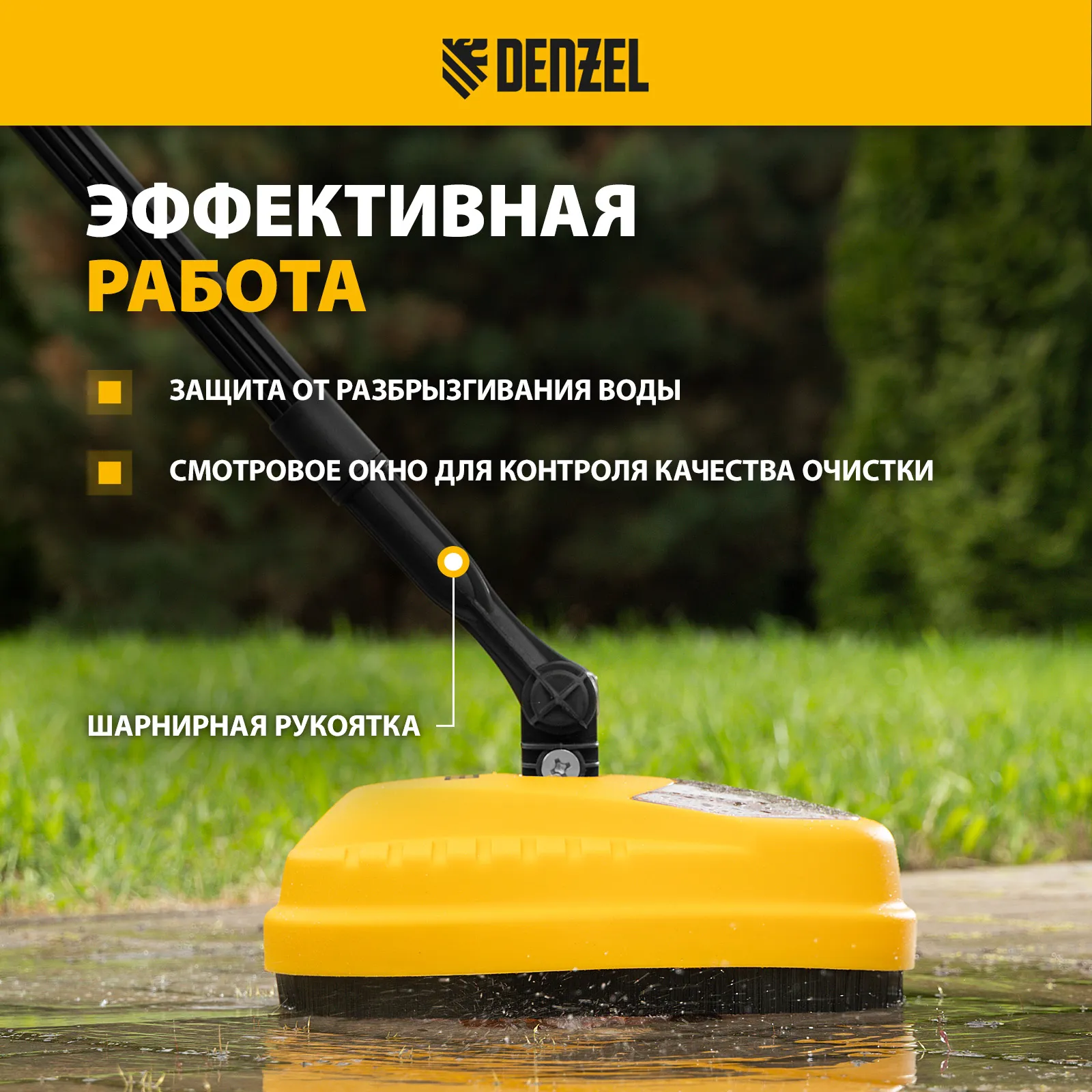 Насадка Denzel 58306 для моечных машин высокого давления серии R — очиститель вертикальных и горизонтальных поверхностей: фасадов, стен, дверей и дорожек. Благодаря щетке с жестким ворсом эффективно справляется даже с сильными загрязнениями.
