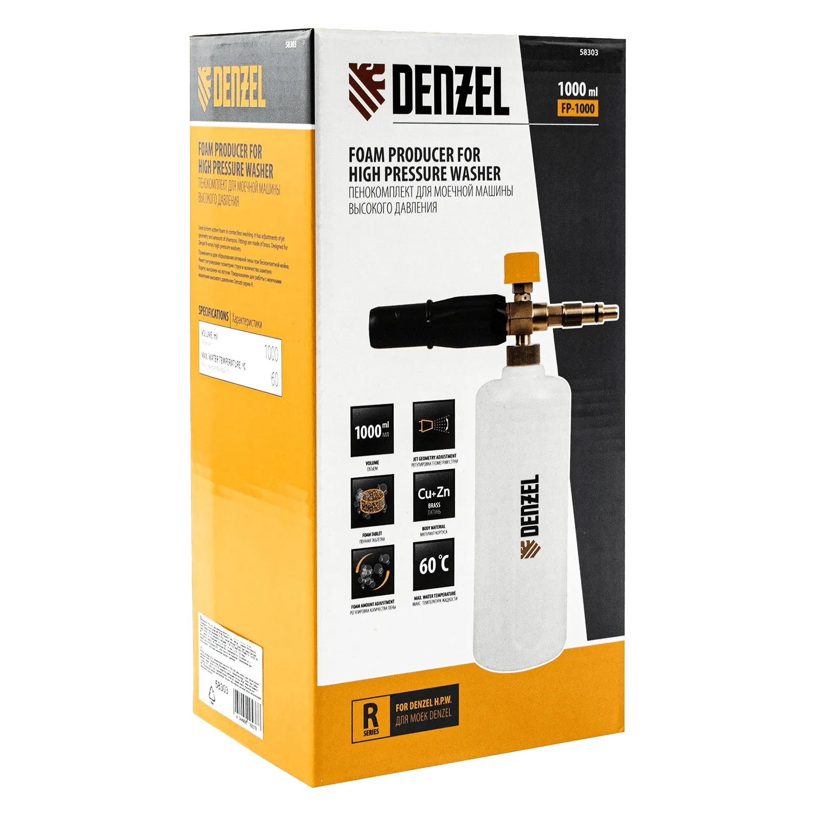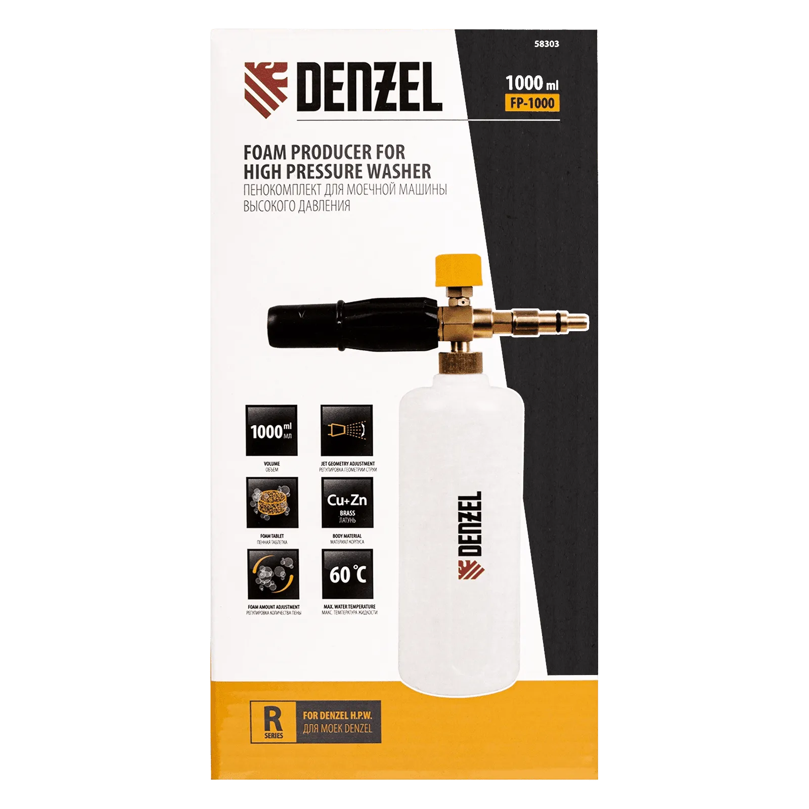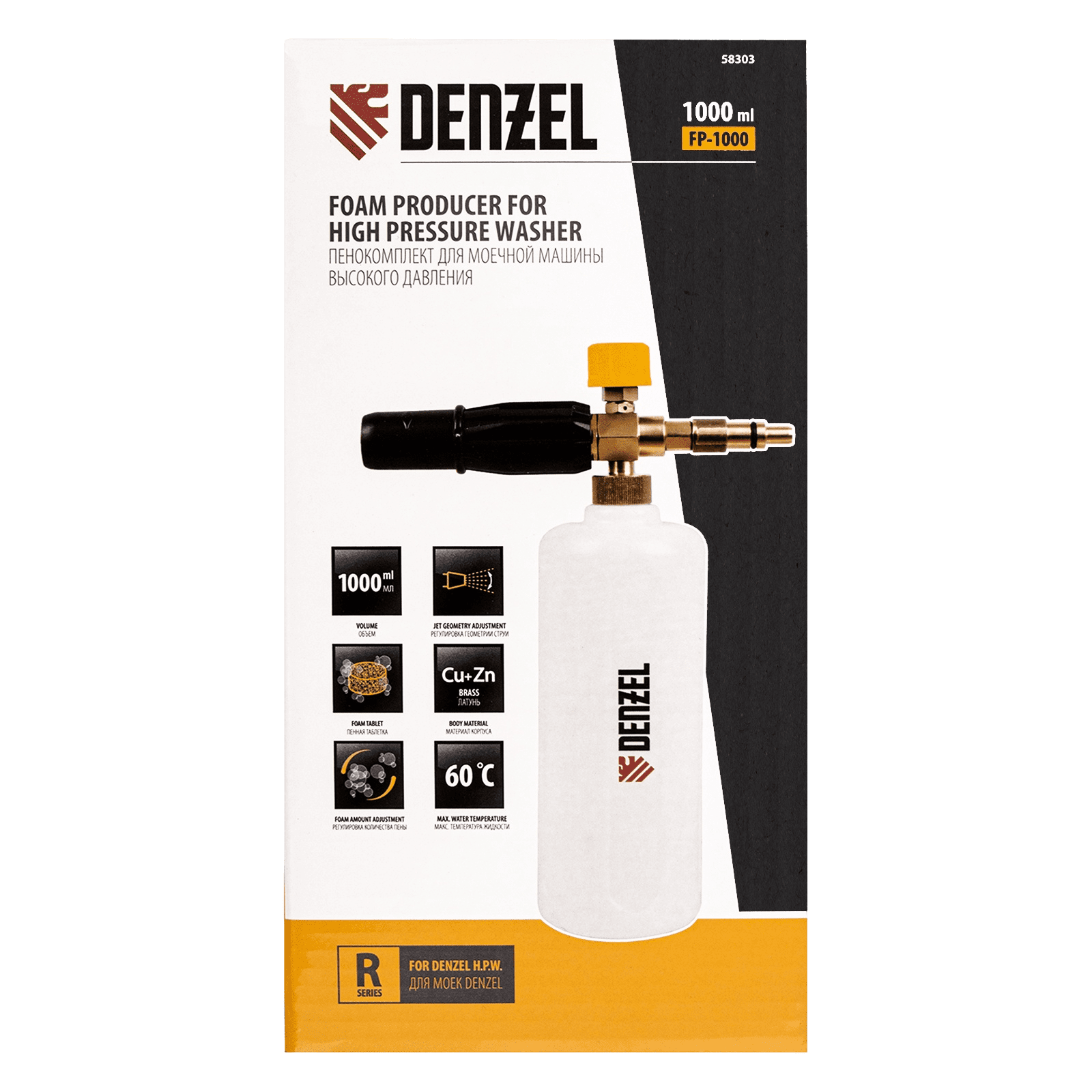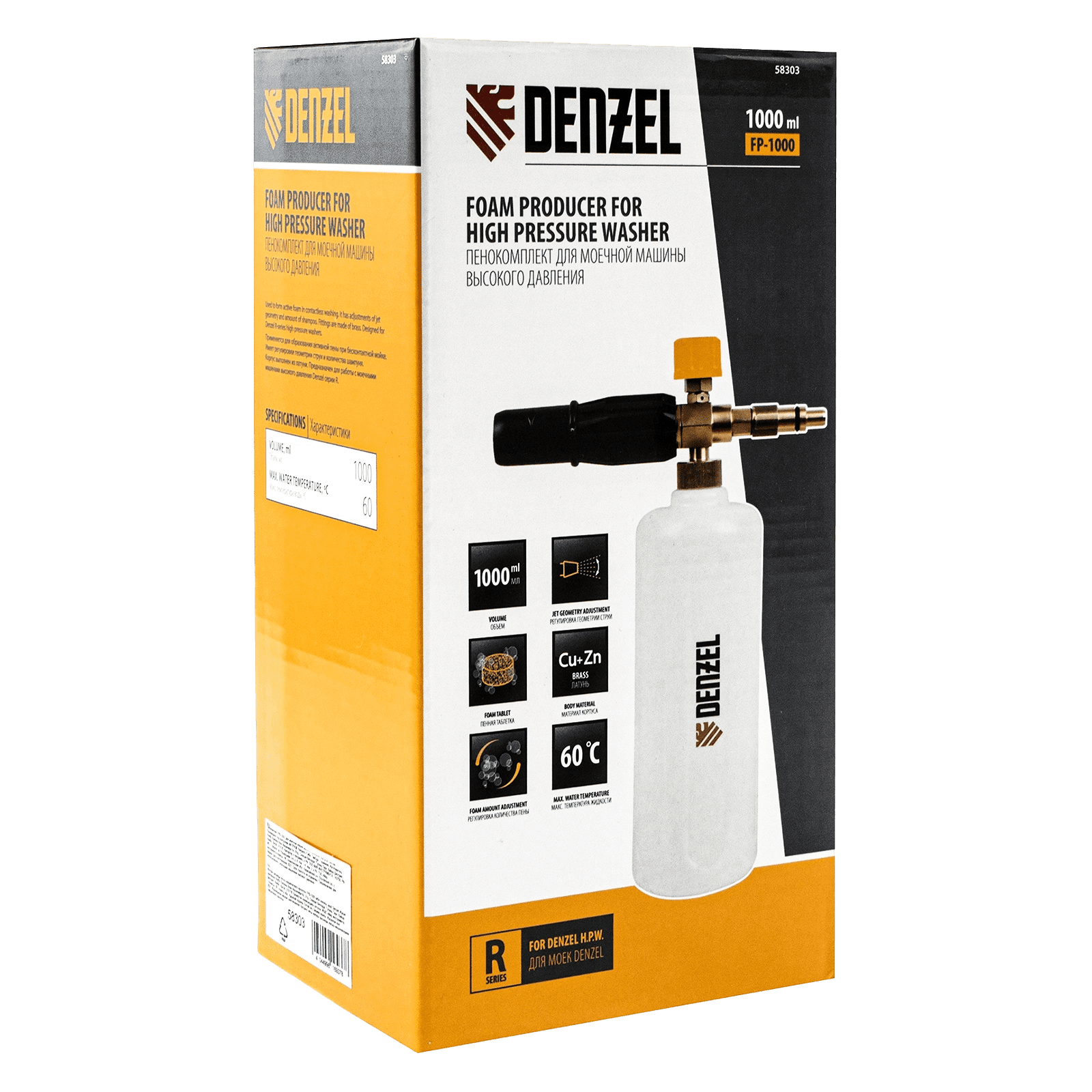 Пенокомплект Denzel FPB-1000 58303 позволяет получать пенный раствор для мойки кузовов автомобилей и других поверхностей. Он устанавливается на моечные машины высокого давления Denzel серии R.