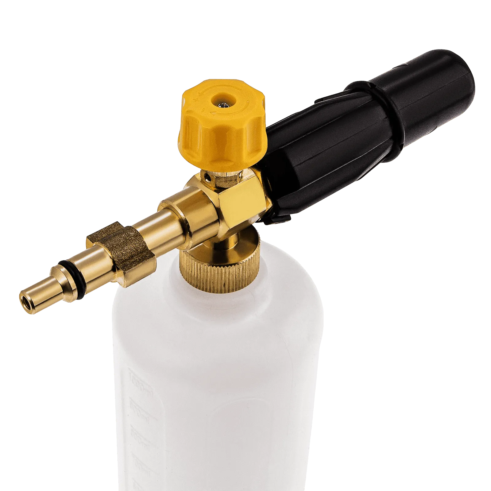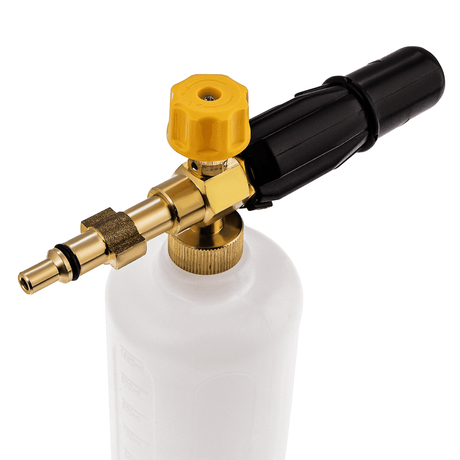 - Надежность и долговечность — латунные фитинг и адаптер устойчивы к коррозии и механическим повреждениям, бутылка и пенная насадка из прочного пластика не подвержены воздействию химических растворов.