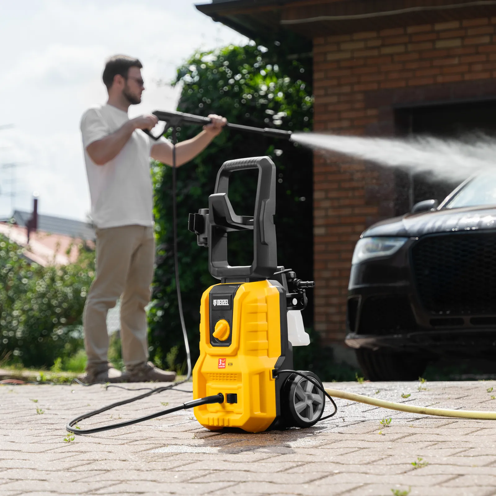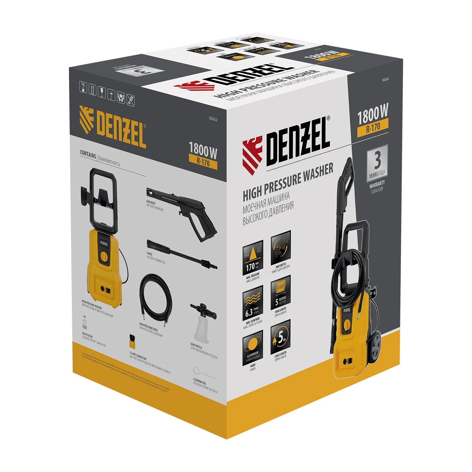 Моечная машина высокого давления Denzel R-170 58262 мощностью 1800 Вт поддерживает максимальное рабочее давление до 170 бар и обеспечивает объем подачи воды 380 л/ч. Позволяет быстро и эффективно очистить садовый инвентарь, фасад дома, дорожку, отмыть автомобиль и т.д. Оснащена самовсасывающим помпой, поэтому может работать даже без подключения к водопроводу — подойдет любой резервуар или емкость с водой. Машина оптимальна для бытового использования.