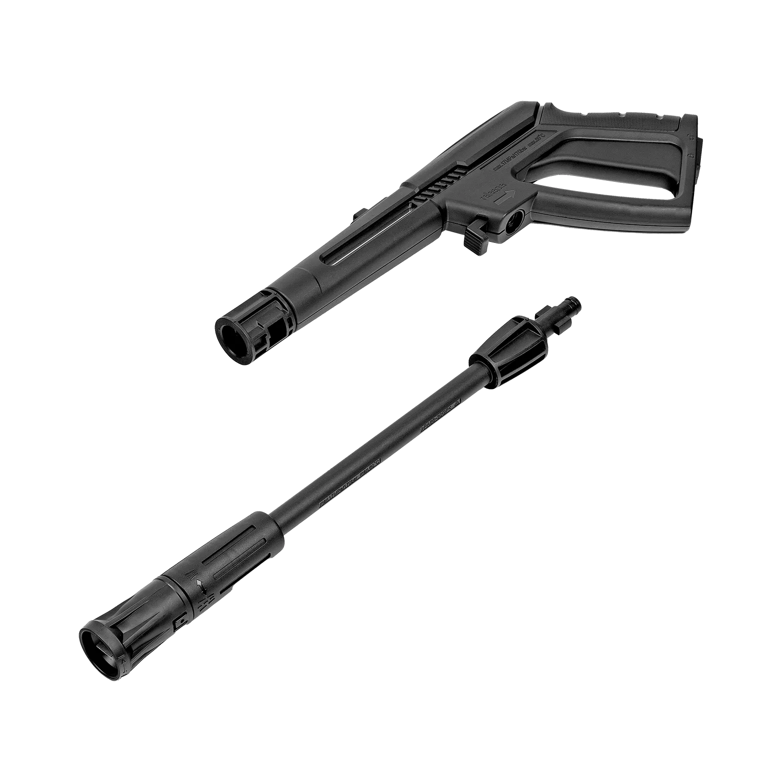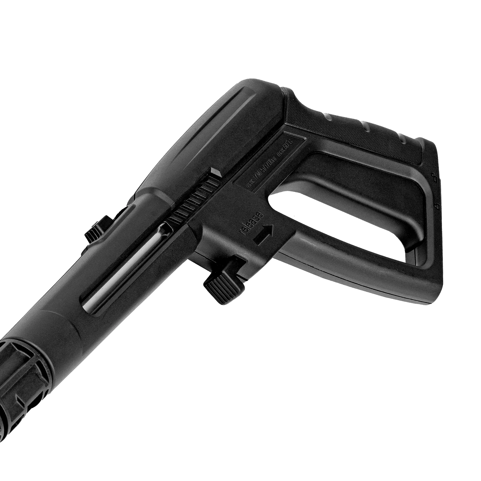 - Безопасность — перед началом работы необходимо разблокировать рычаг моечного пистолета для предотвращения случайного запуска.