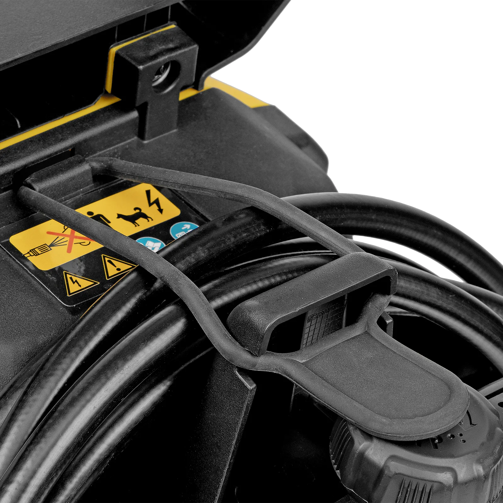 длина кабеля и шланга высокого давления составляет 5 м, что позволяет свободно передвигаться по участку.