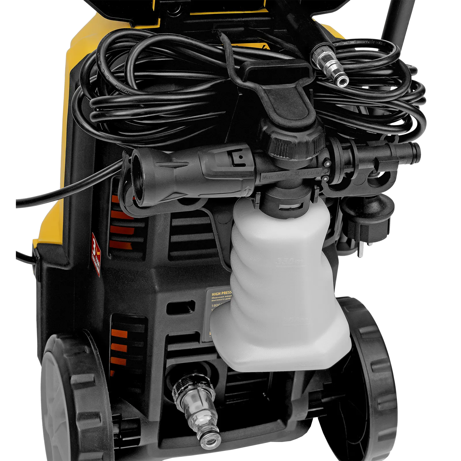 - Эффективное очищение — для получения качественного результата можно использовать моющее средство (пеногенератор входит в комплект поставки).