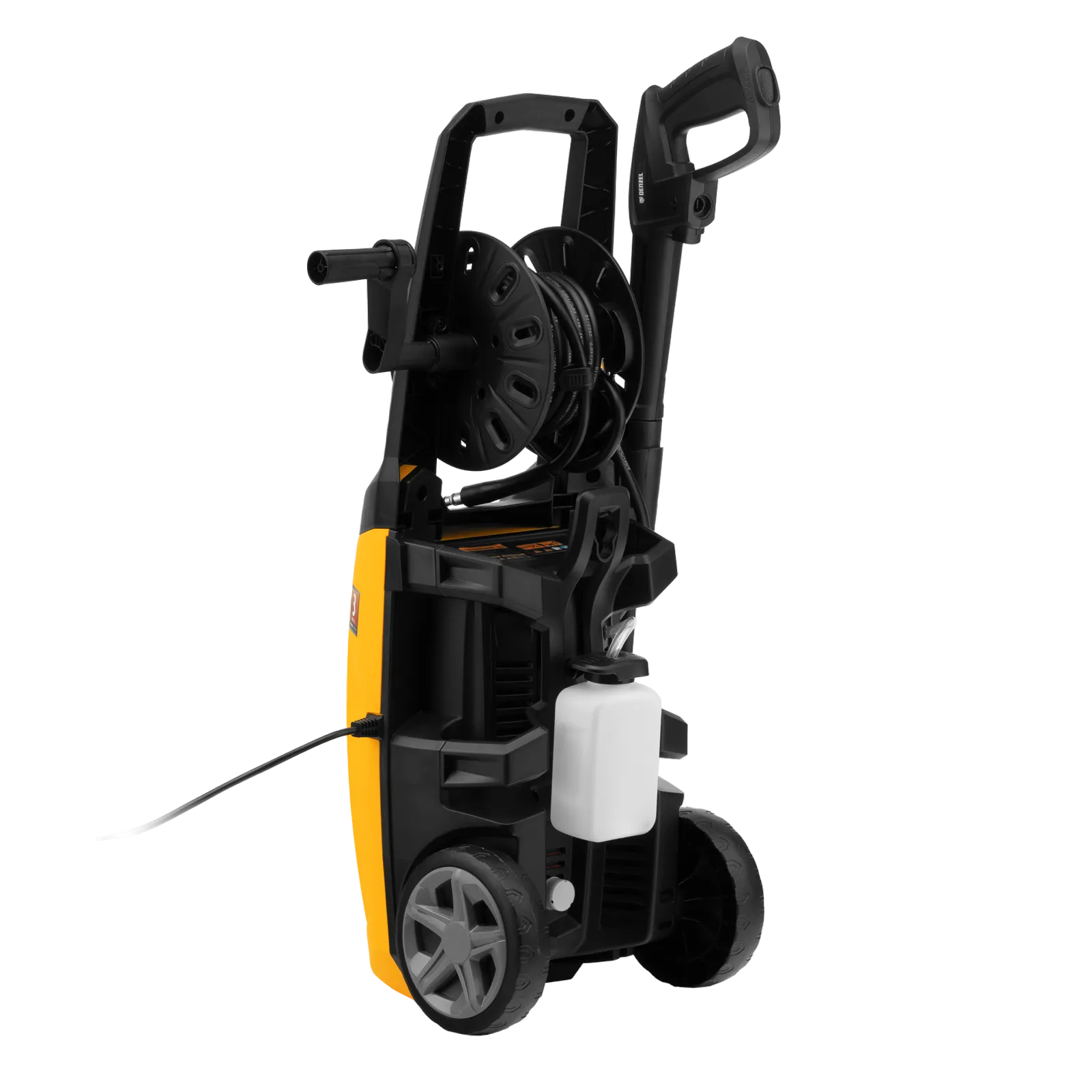 Моечная машина высокого давления Denzel R-170D 58229 с барабаном, мощностью 2000 Вт и производительностью 360 л/ч, подает струю воды под давлением 170 бар и используется для очищения поверхностей. Позволяет быстро удалить загрязнения с кузова автомобиля, мотоцикла, велосипеда, садового и хозяйственного инвентаря, очистить садовую дорожку и террасу, а также стены и окна строений. Источником воды может служить водопроводная линия, а также любая емкость — машина способна работать в режиме самовсасывания. Мойка пригодится владельцам загородных участков.