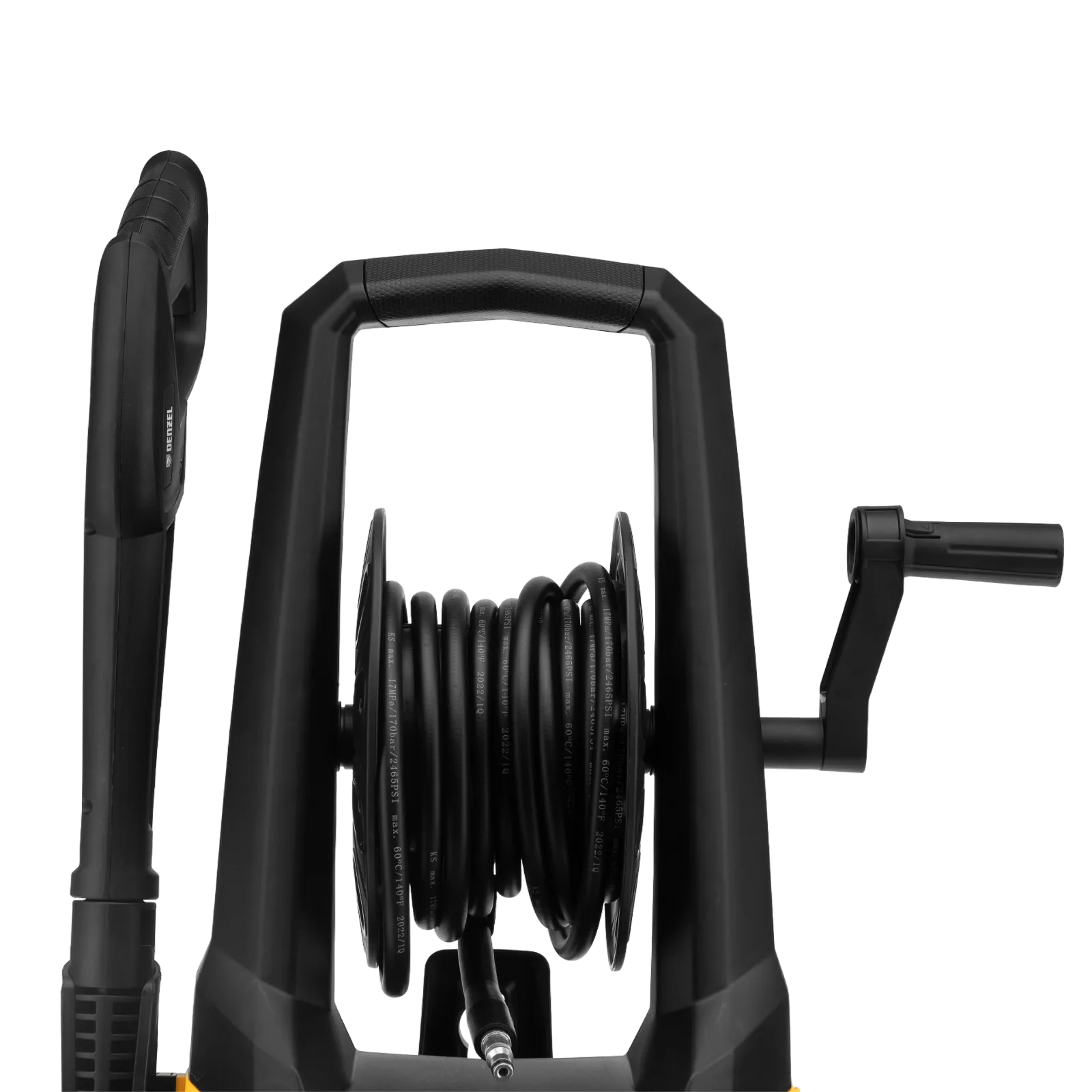 - Удобная эксплуатация — катушка позволяет вытягивать шланг на нужную длину.