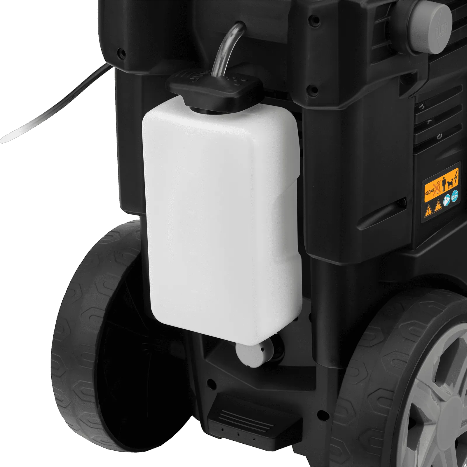 - Использование моющего средства — машина имеет встроенный бачок, также можно подключить внешний пеногенератор, входящий в комплект поставки.