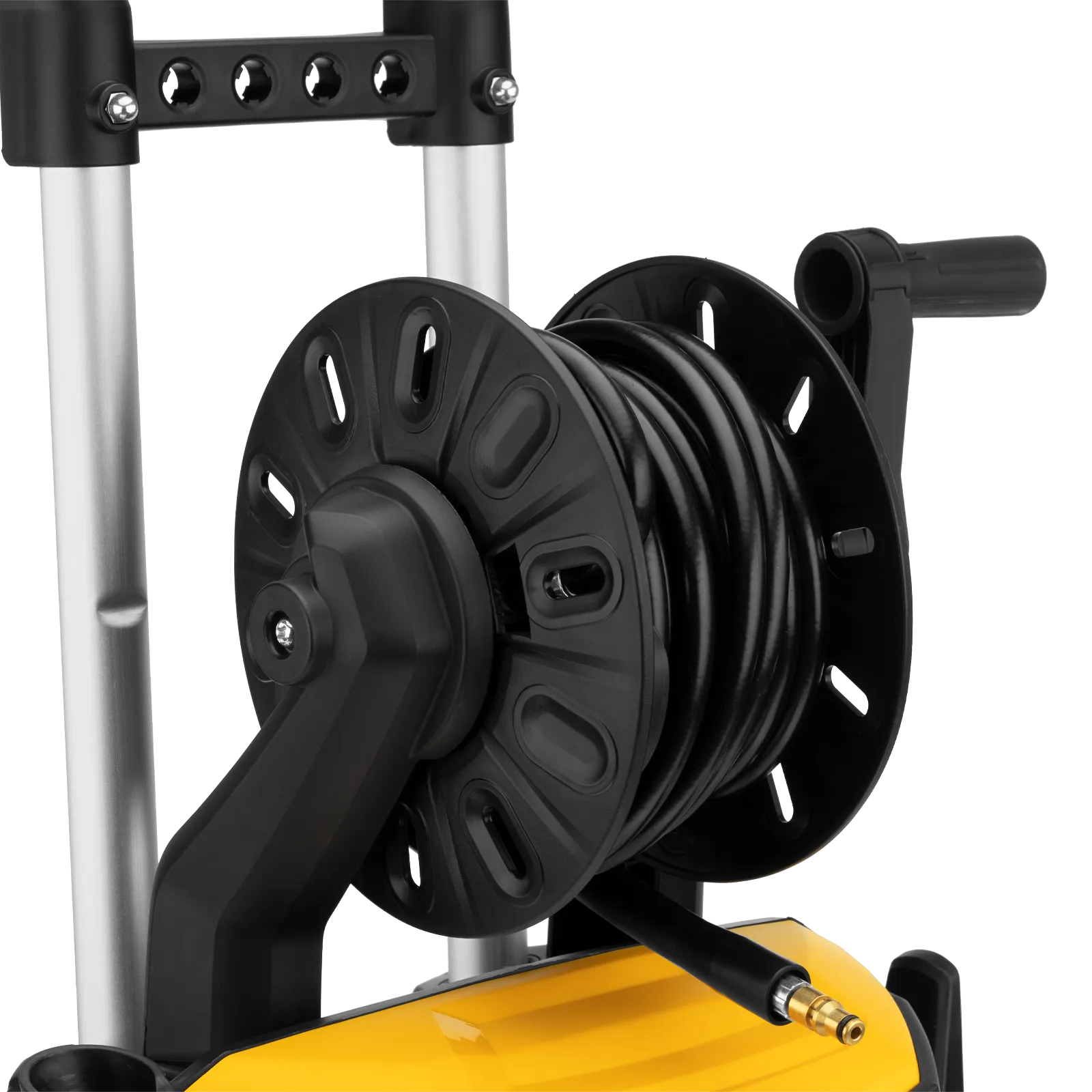 - Функциональность — машина оборудована специальной катушкой для удобного вытягивания шланга на необходимую длину.