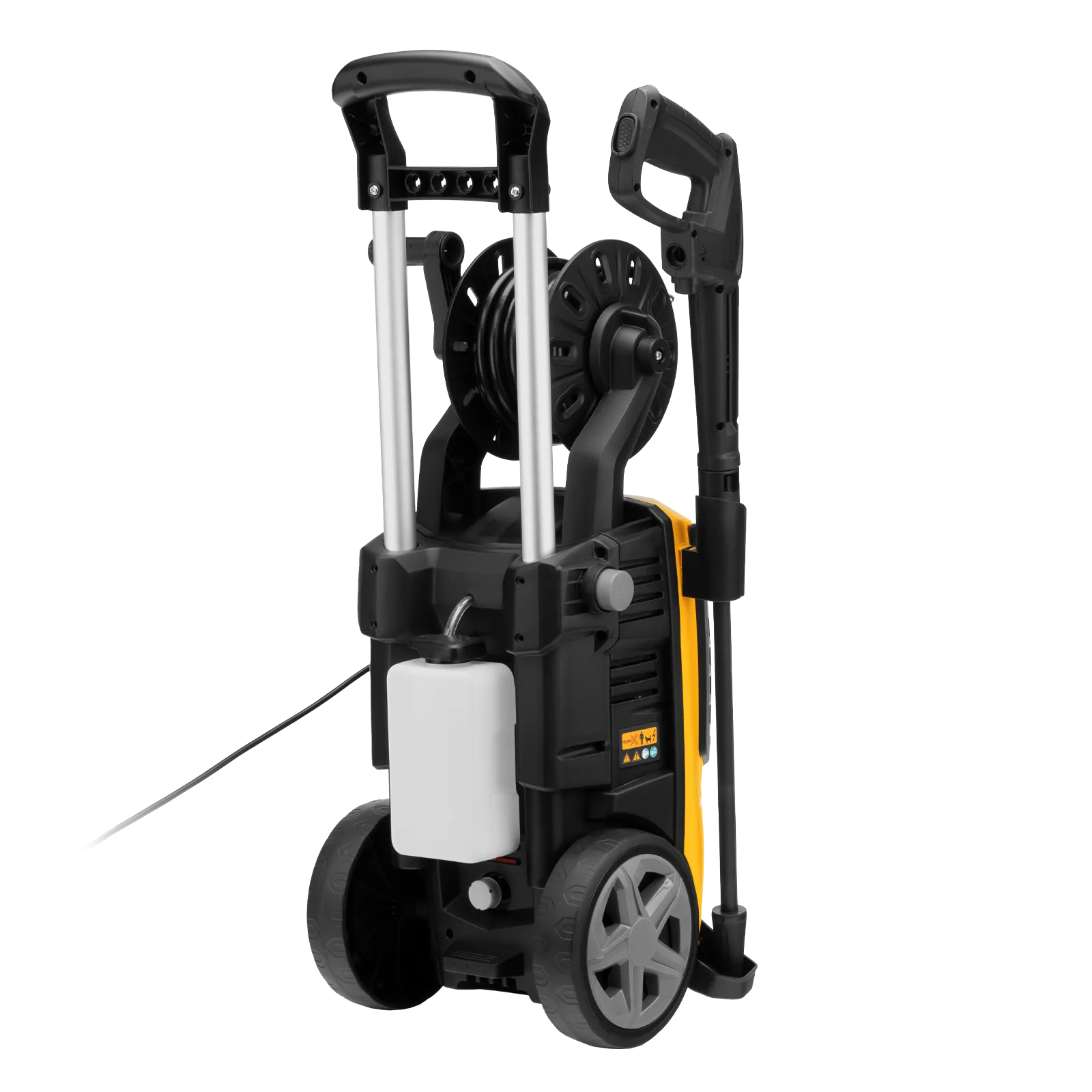 - Увеличенная рабочая зона — шланг длиной 8 м и 7-метровый кабель позволяют свободно перемещаться по участку.