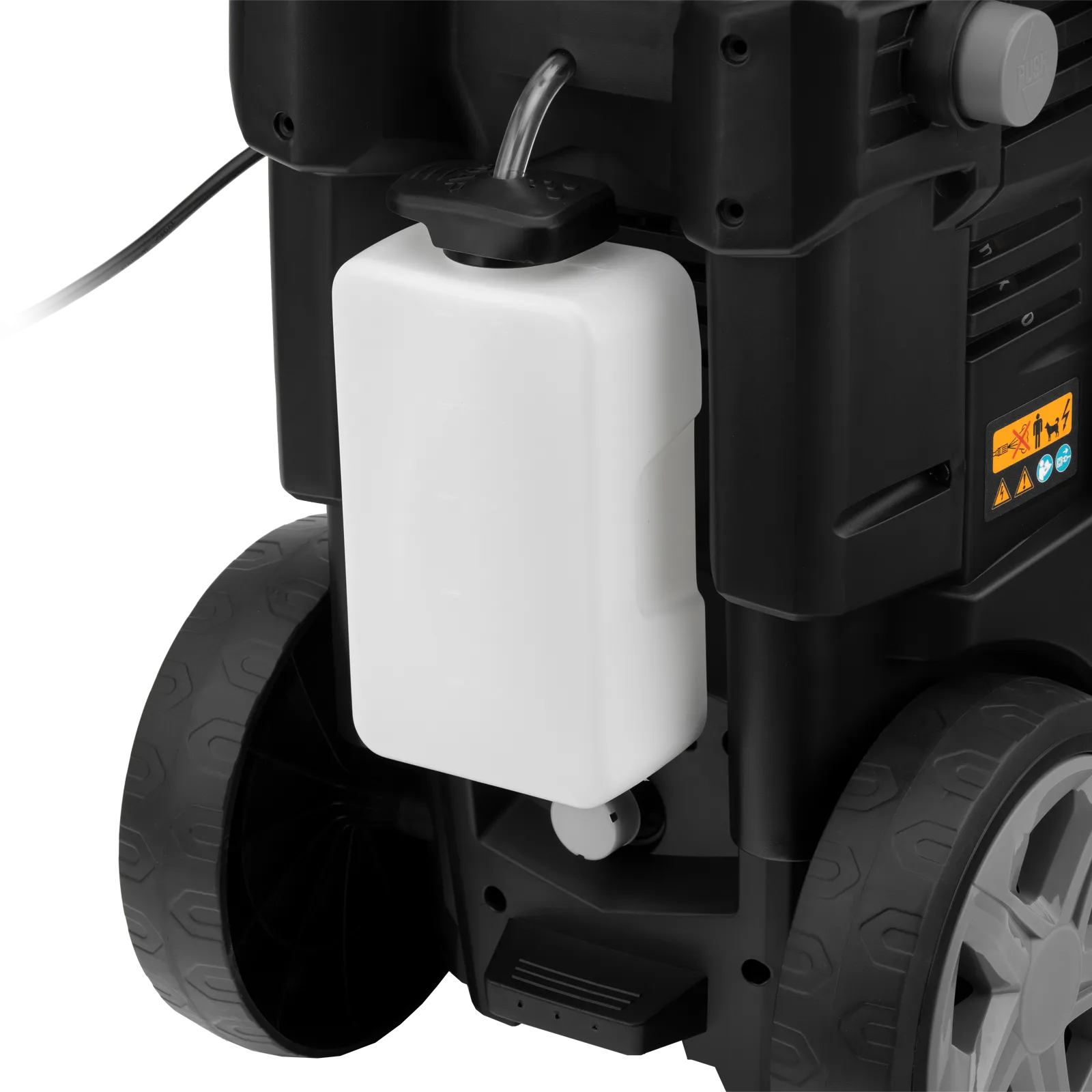 - Использование моющего средства — машина имеет встроенный бачок, также можно подключить внешний пеногенератор, входящий в комплект поставки.