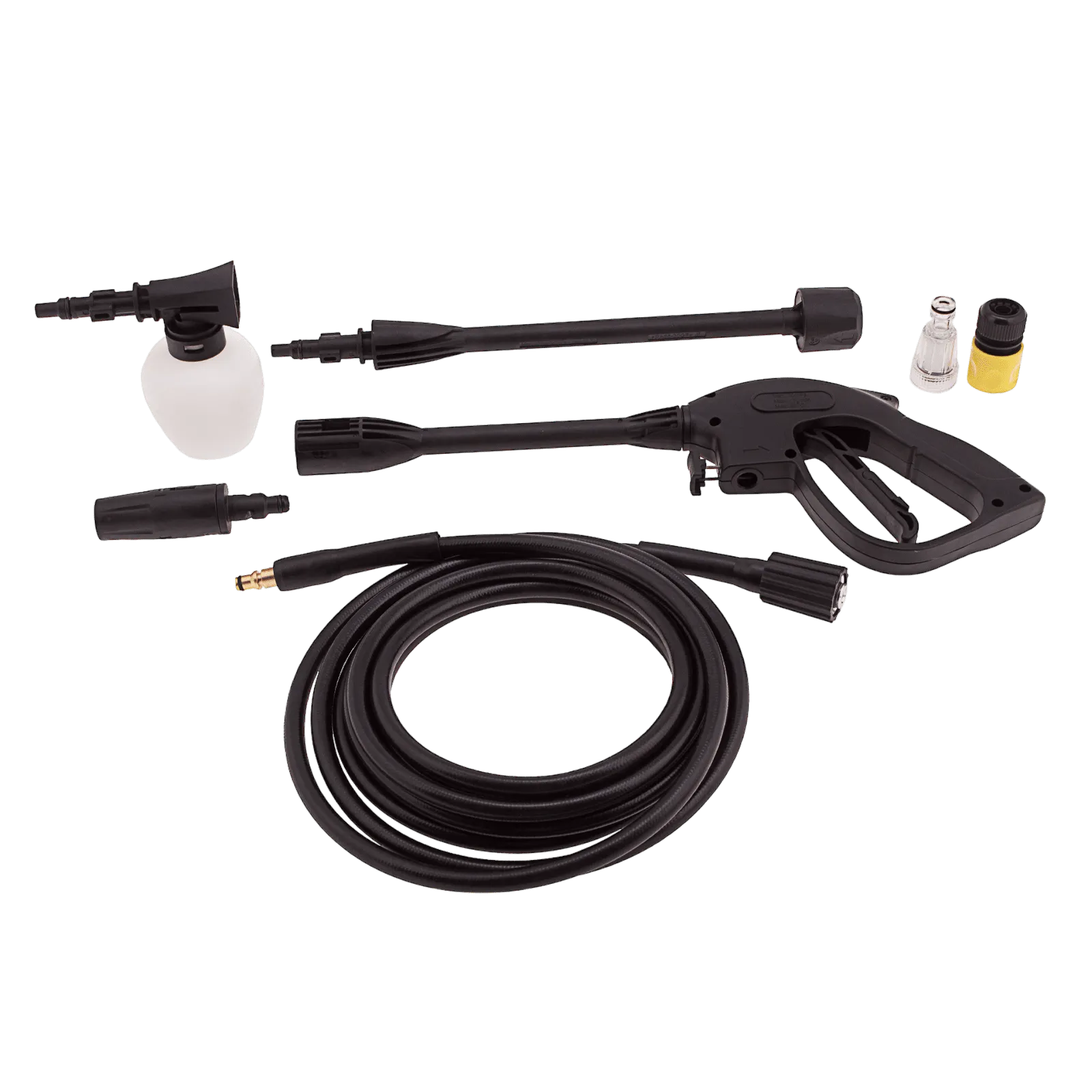 - Эффективная работа — входящий в комплект пеногенератор позволяет использовать моющие средства для очистки поверхностей.