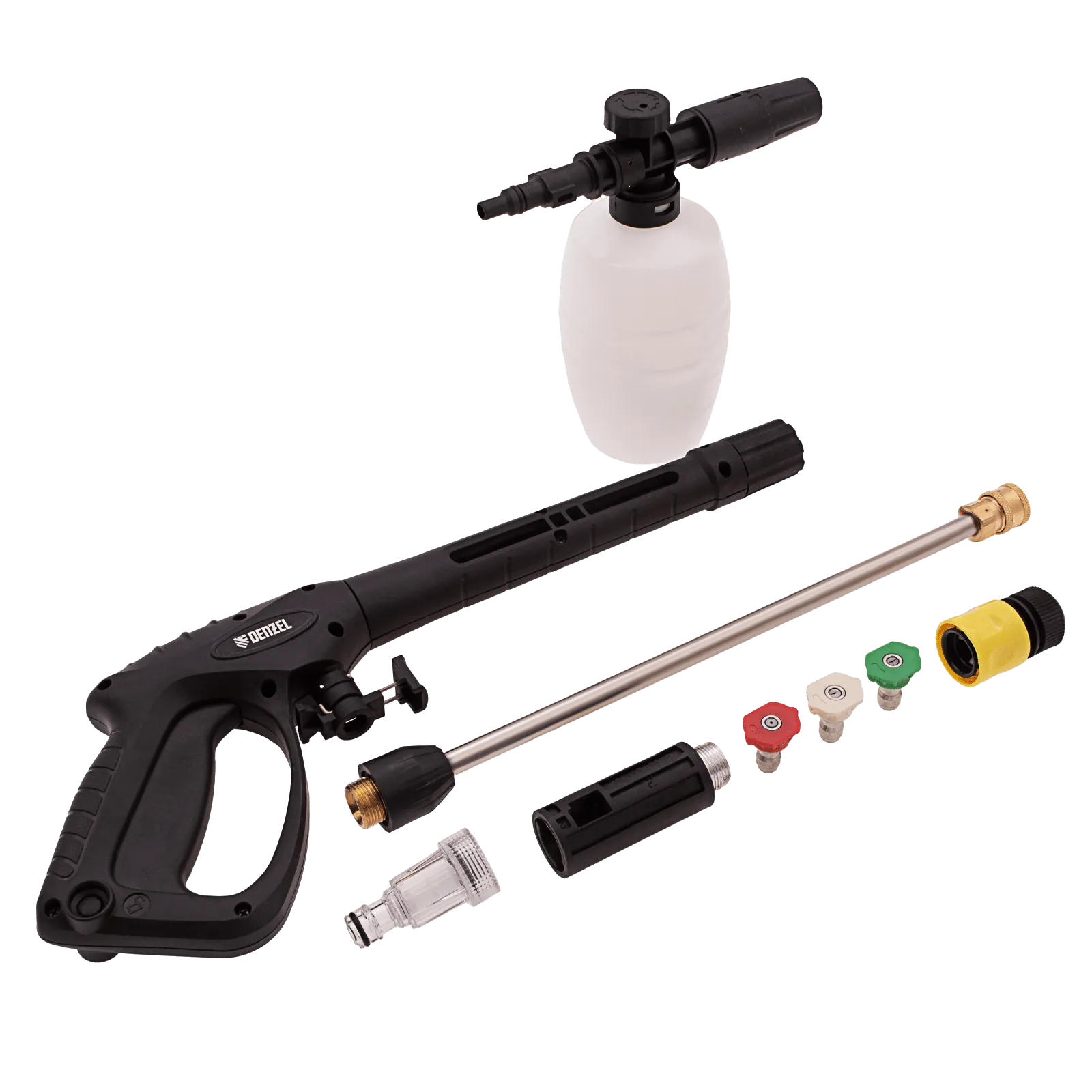 - Подготовка к работе за несколько секунд — быстросъёмный коннектор пистолета позволяет подключить шланг одним движением.