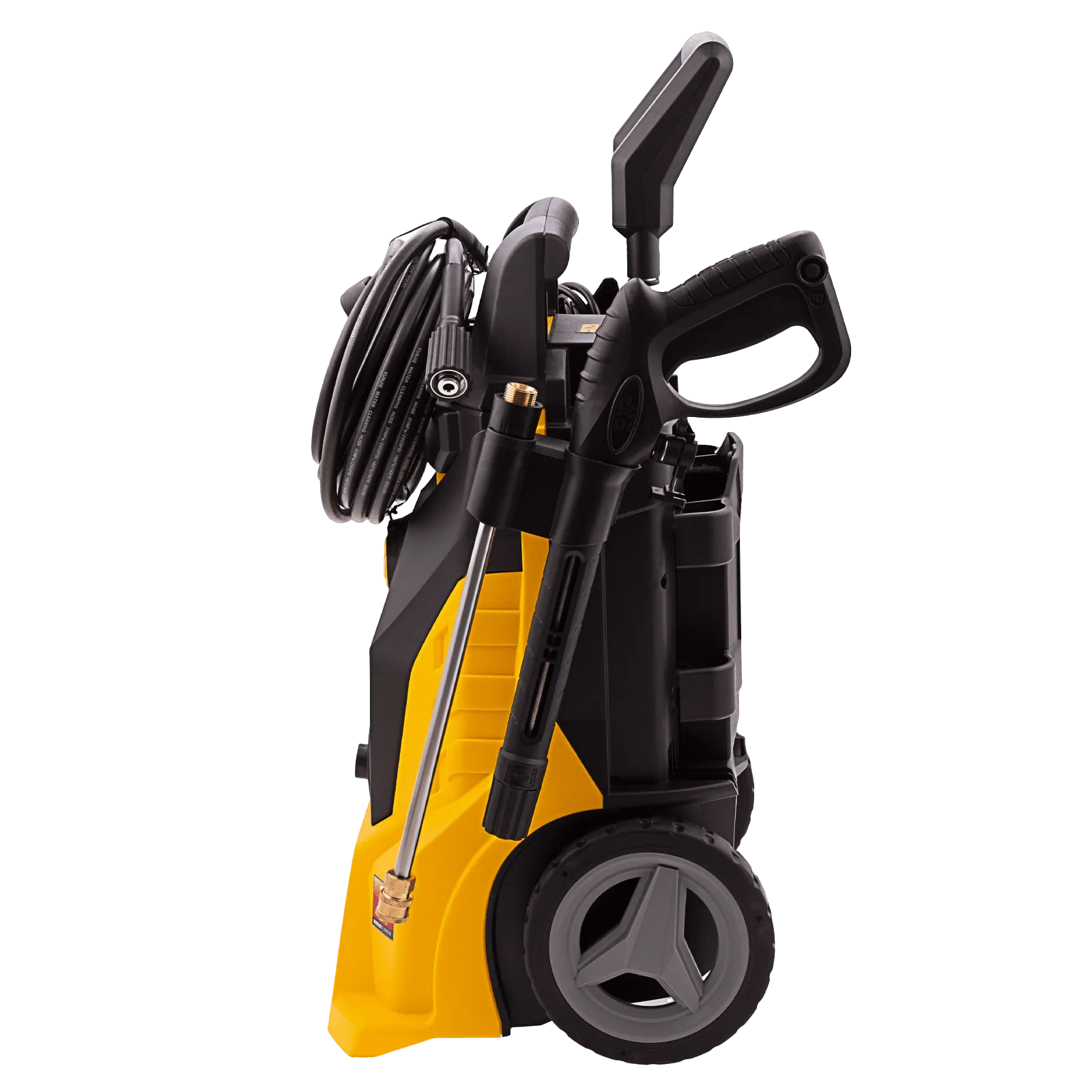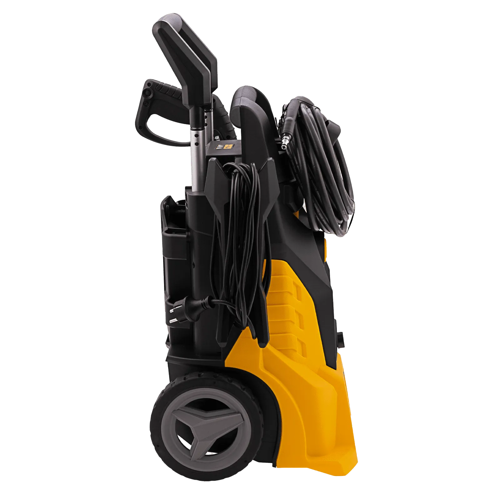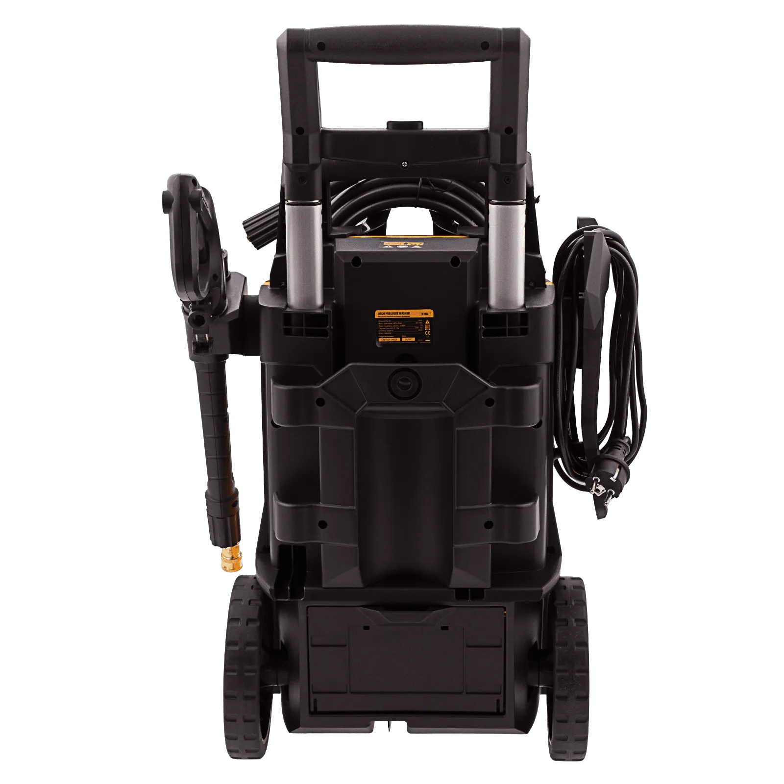 - Мобильность — колеса и телескопическая ручка позволяют легко перемещать мойку во время работы.